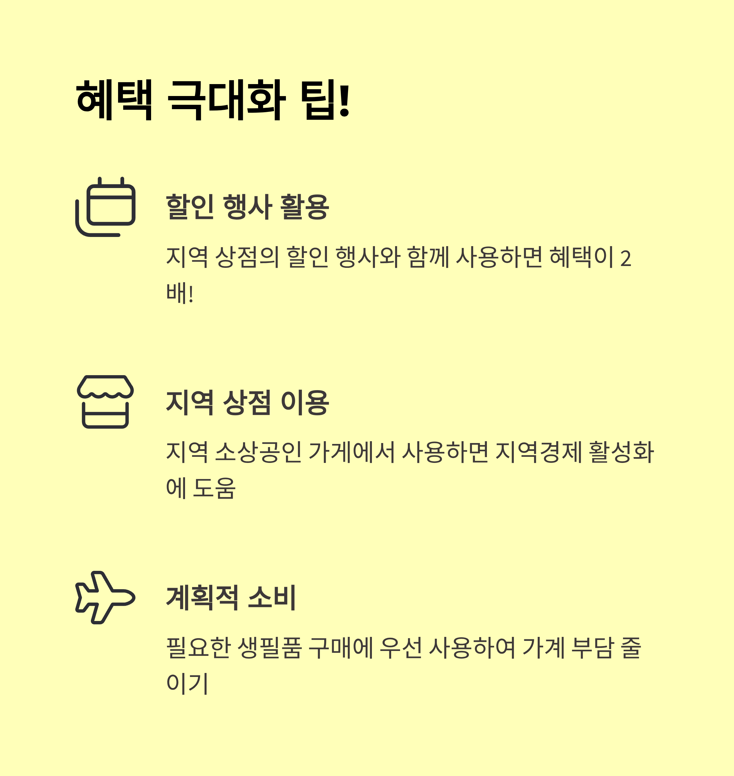 A. 지원금은 사용 가능 지역과 업종이 정해져 있습니다. 예를 들어 서울 시민이면 서울에서만, 그리고 대형마트나 백화점, 온라인 쇼핑몰 등에서는 사용할 수 없습니다. 사용처를 먼저 확인하는 습관이 중요합니다. 이 부분에 대한 전문가 의견을 참고하면 좋습니다.