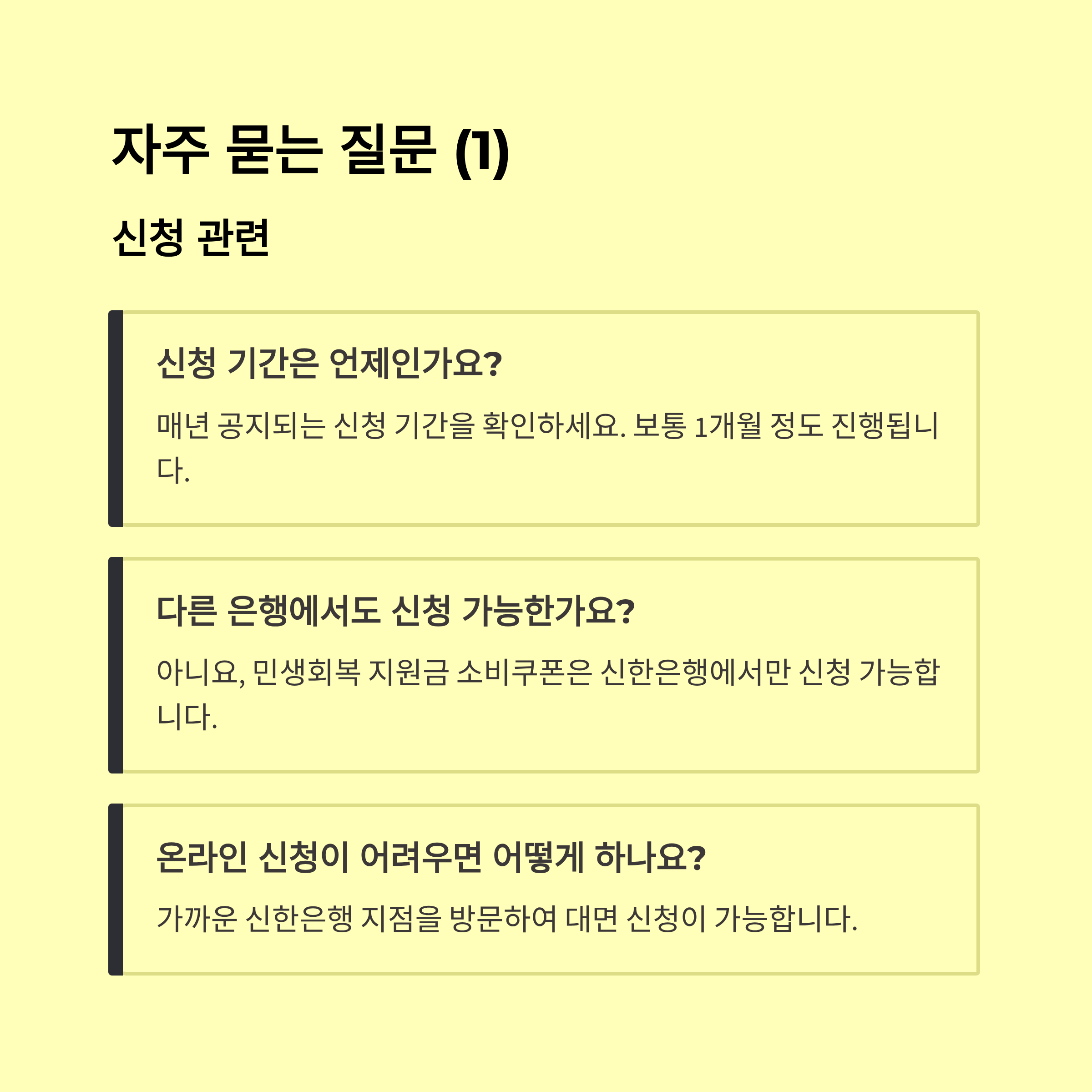 - 🏦 은행 방문 시: 본인 신분증, 본인 신한카드, 그리고 '요일제' 날짜를 꼭 확인한다.