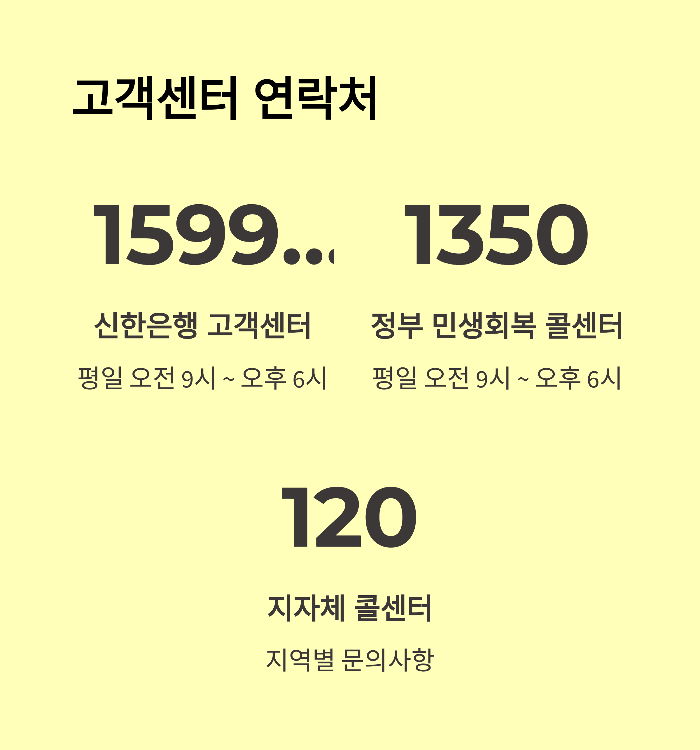 - 필수 준비물: 본인 신분증(주민등록증, 운전면허증 등)과 지원금을 충전할 본인 명의의 신한 신용/체크카드.