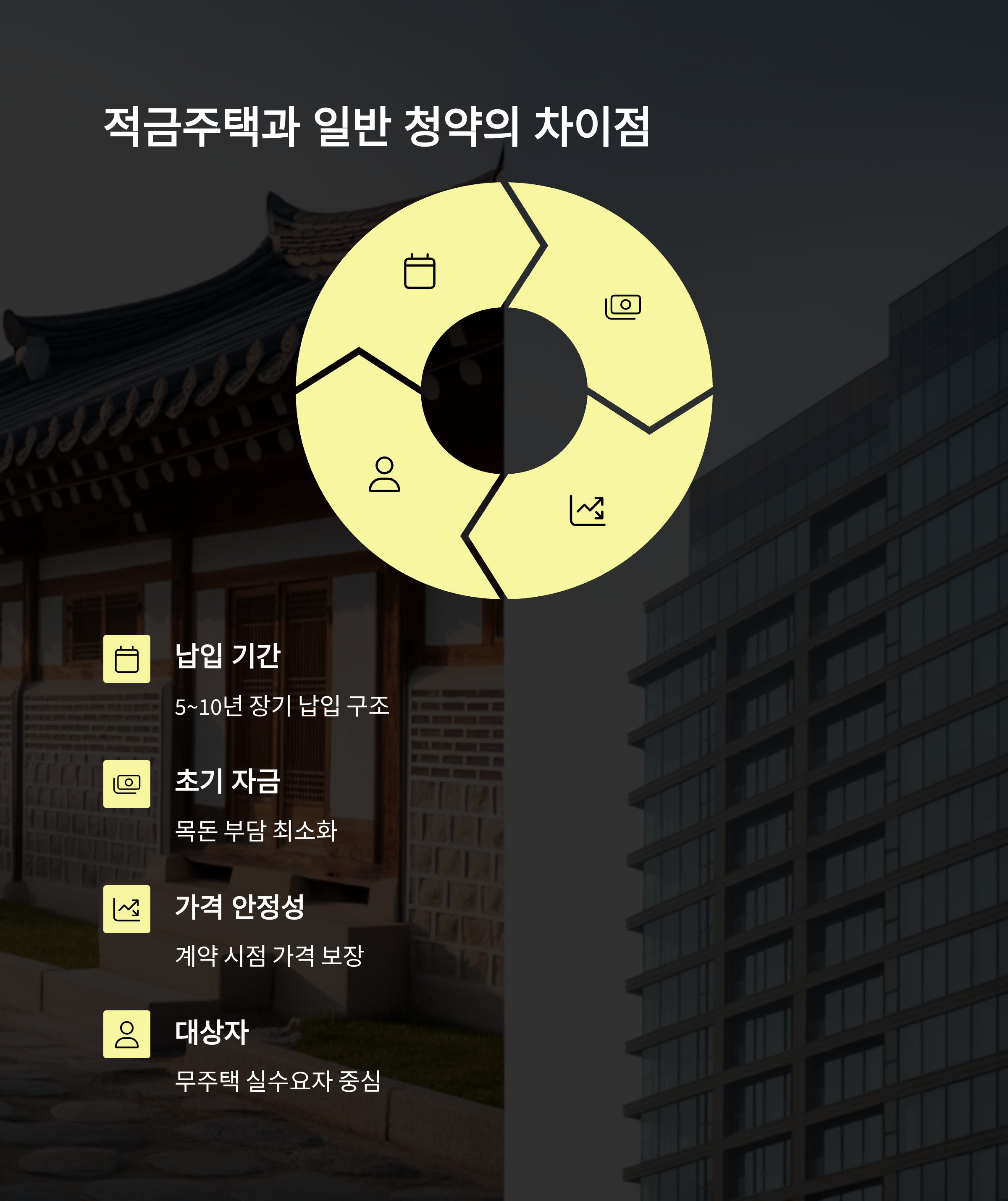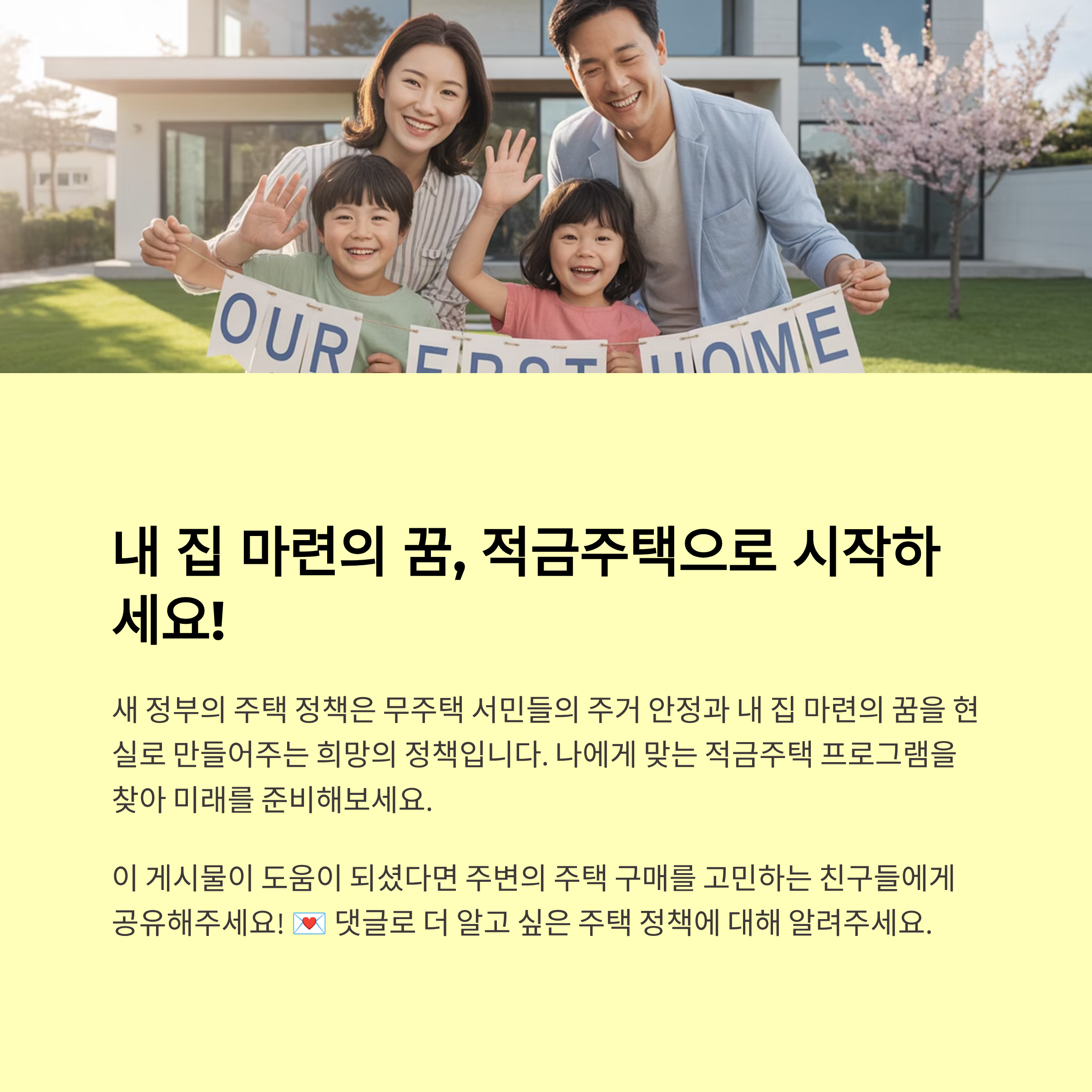 적금주택은 분명 수십억 원의 현금 없이는 서울 아파트를 넘볼 수 없는 현 상황에서, 초기 자본이 부족한 청년과 신혼부부에게는 새로운 '주거 사다리'가 될 수 있는 획기적인 시도입니다. 다만, 20~30년이라는 긴 호흡으로 접근해야 하며, 시세차익을 온전히 누릴 수 없다는 점과 정책의 장기적 안정성에 대한 리스크를 명확히 인지해야 합니다.
