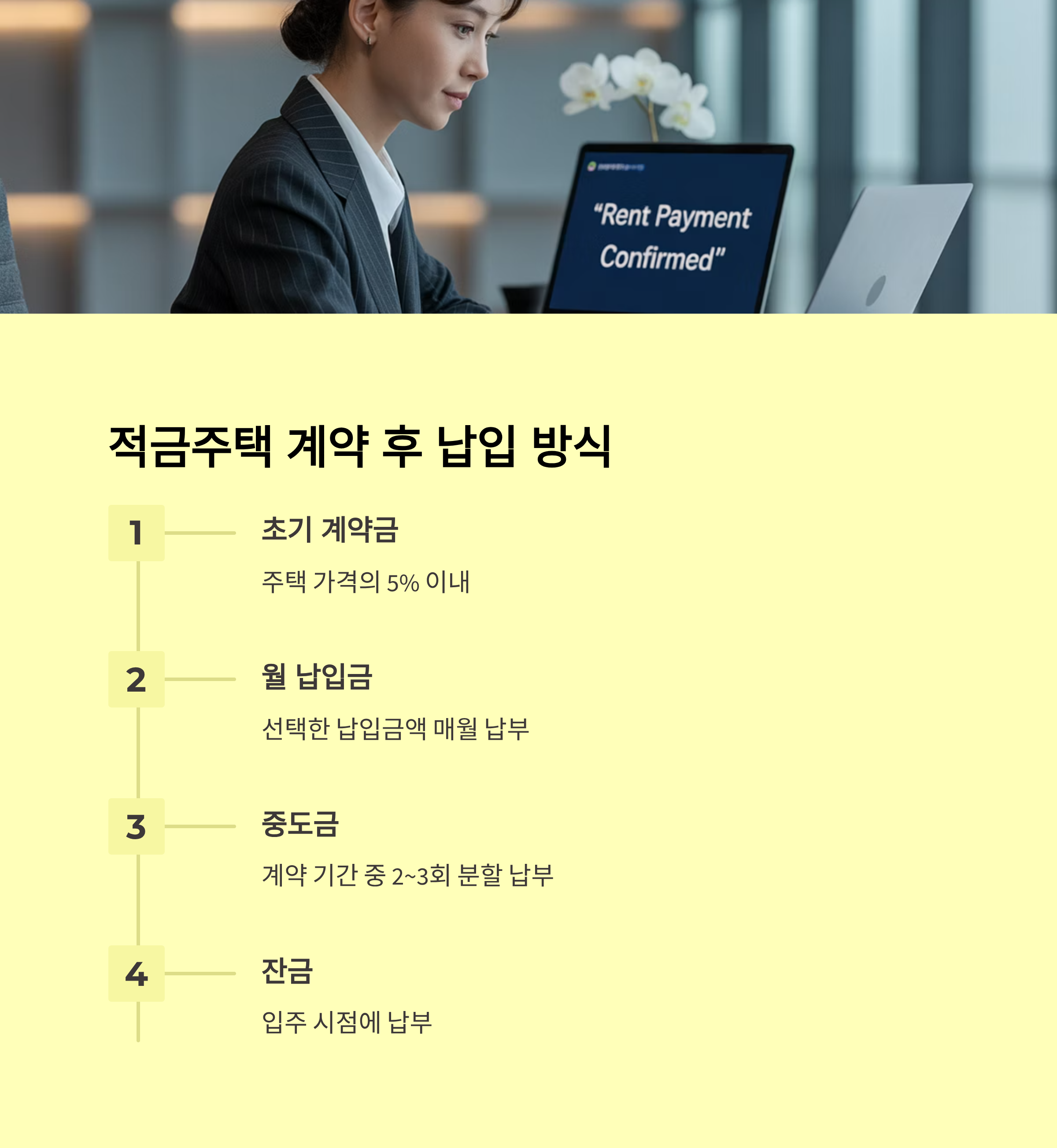 적금주택은 다음과 같은 단계로 진행됩니다. 5억 원짜리 주택을 예시로 들어보겠습니다.