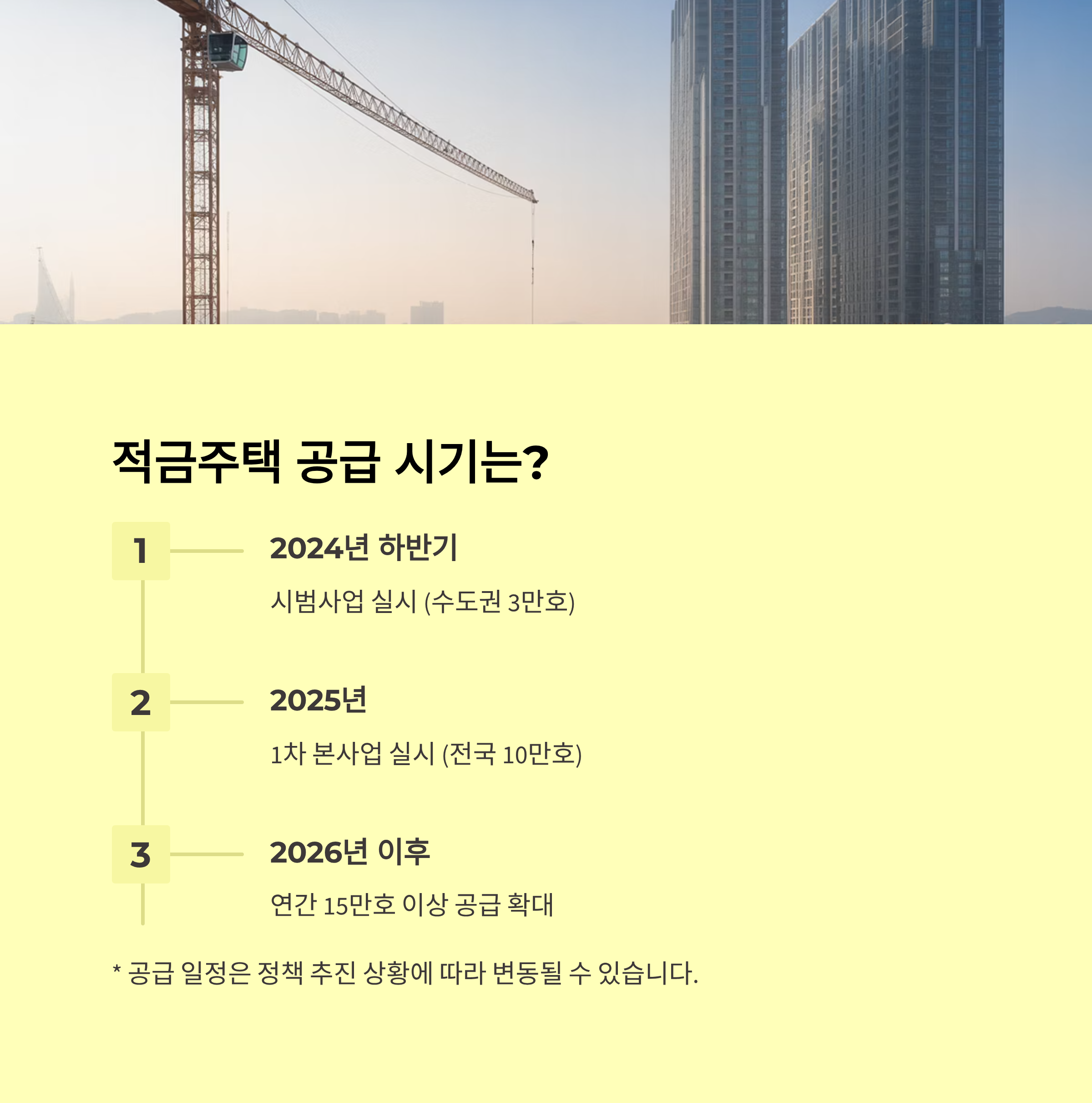 A. 구체적인 시기는 유동적이지만, 3기 신도시인 남양주 왕숙, 하남 교산, 고양 창릉 등 수도권 공공택지지구를 중심으로 공급될 예정입니다. 정부의 정책 추진 속도에 따라 이르면 내년부터 관련 계획이 구체화될 것으로 보입니다.