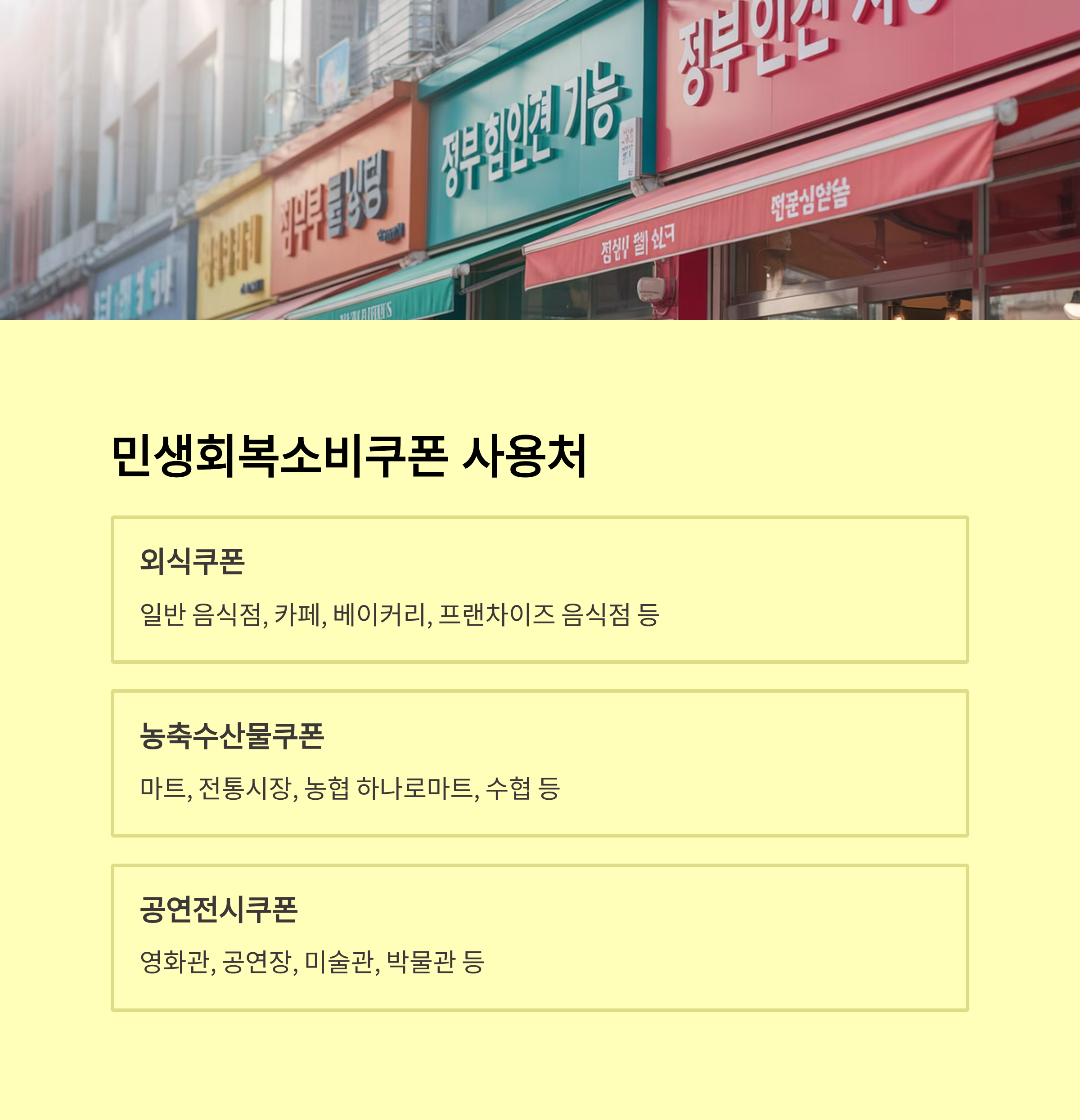| 미용·서비스 | 미용실, 세탁소 등 생활밀착 업종 | 지정 가맹점 확인 필수 |