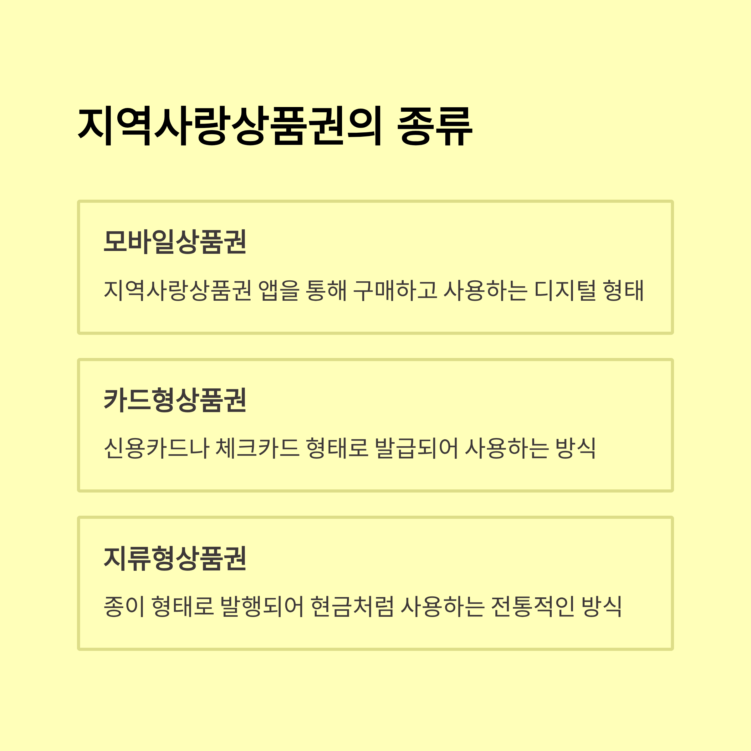 상품권은 모바일형, 지류형, 카드형이 있으며, 신청 시 선택 가능해요. 단, 지역에 따라 지류형 발행이 중단되거나 모바일형만 운영되는 경우도 있으니 확인이 필요해요.