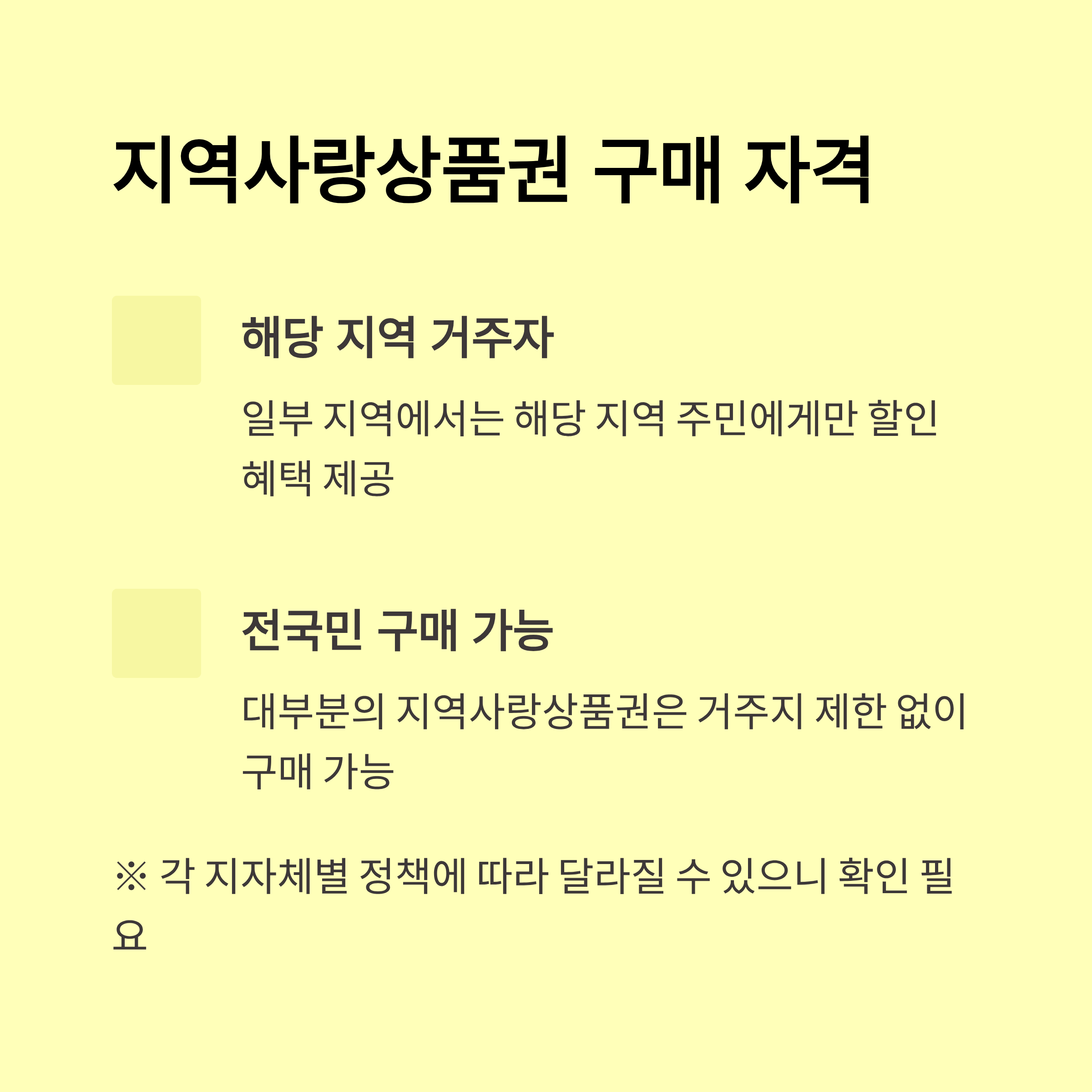 주민등록상 해당 지자체에 거주하는 사람이라면 누구나 신청할 수 있으며, 보통 5~10% 할인된 금액으로 구매할 수 있어요. 예를 들어 9만원에 10만원짜리 상품권을 받을 수 있는 식이죠.