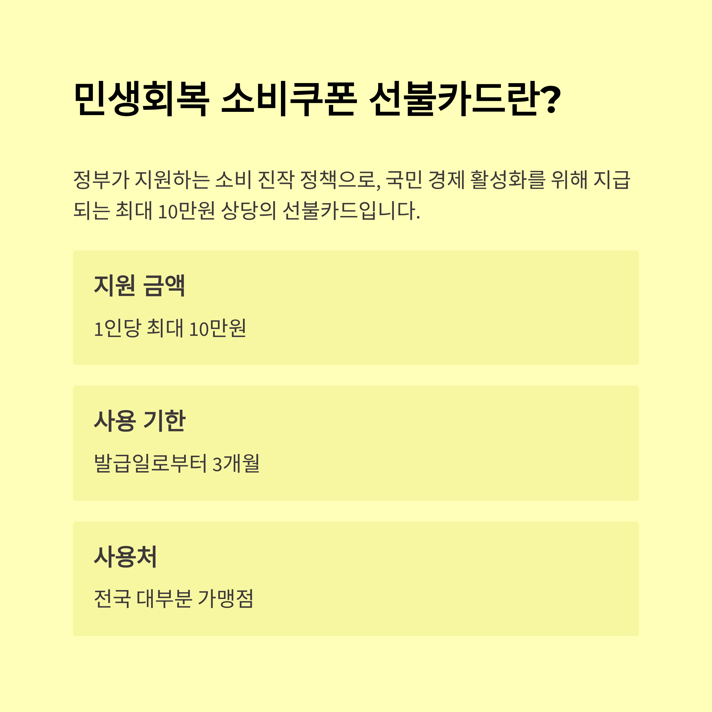 이 선불카드는 일정 금액의 소비쿠폰이 충전된 형태로 제공되며, 등록된 소상공인 매장에서 자유롭게 사용할 수 있어요.