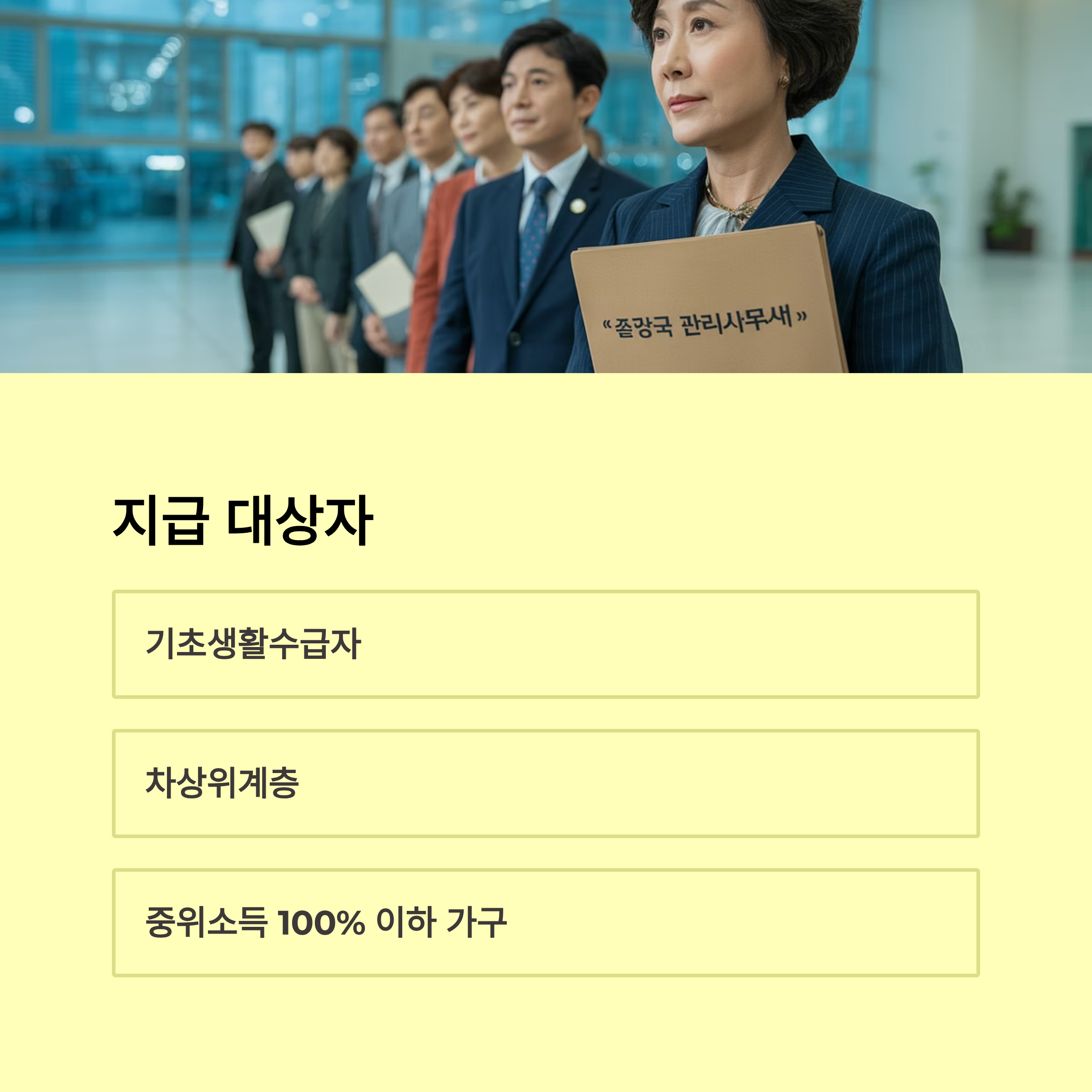 | 기초생활수급자 | 소득 하위 40% 이하 | 자동 지급 |