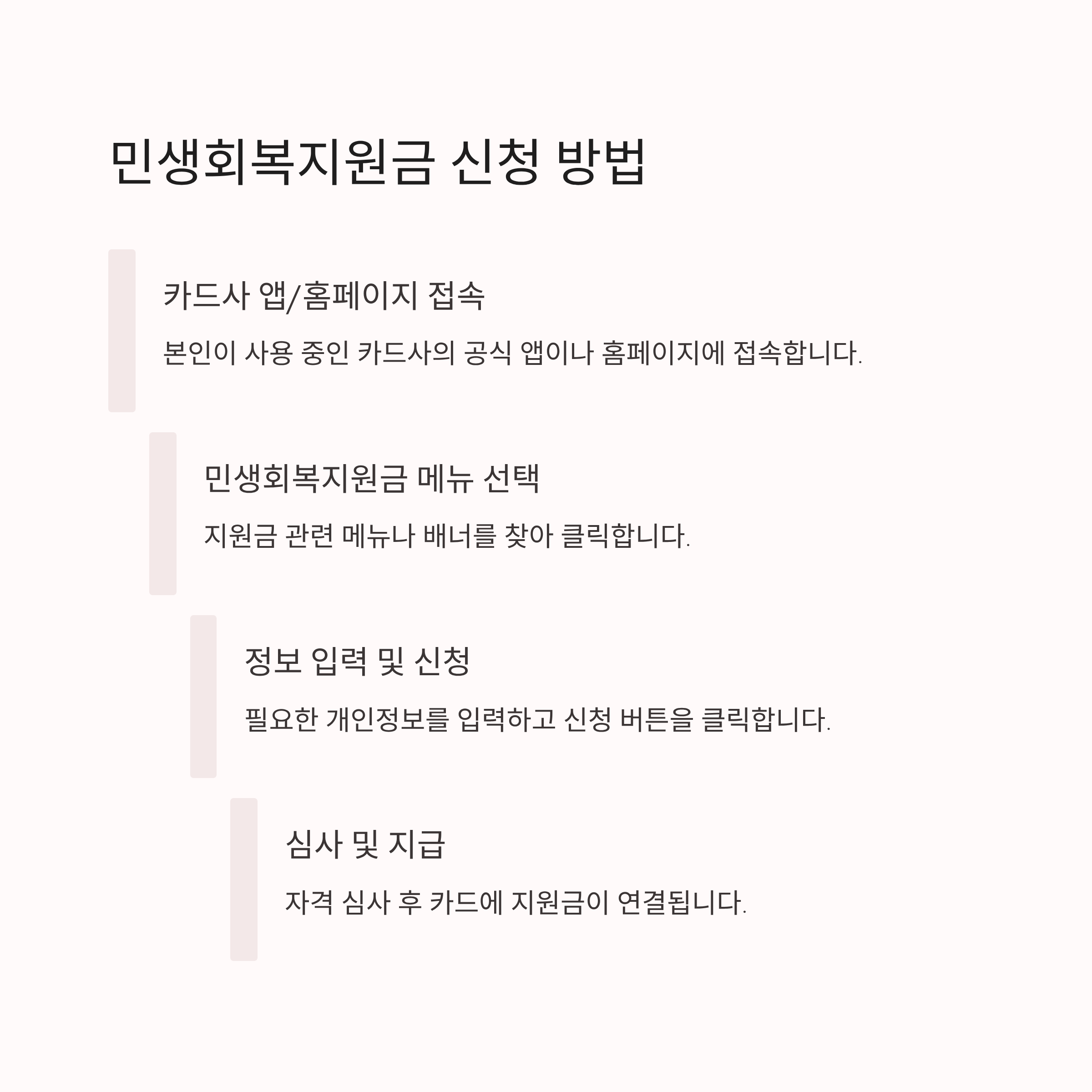 대부분의 지자체는 본인의 신용카드 또는 체크카드를 등록하게 하고, 해당 카드로 결제 시 가맹점에서 자동으로 민생지원금이 우선 차감돼요.