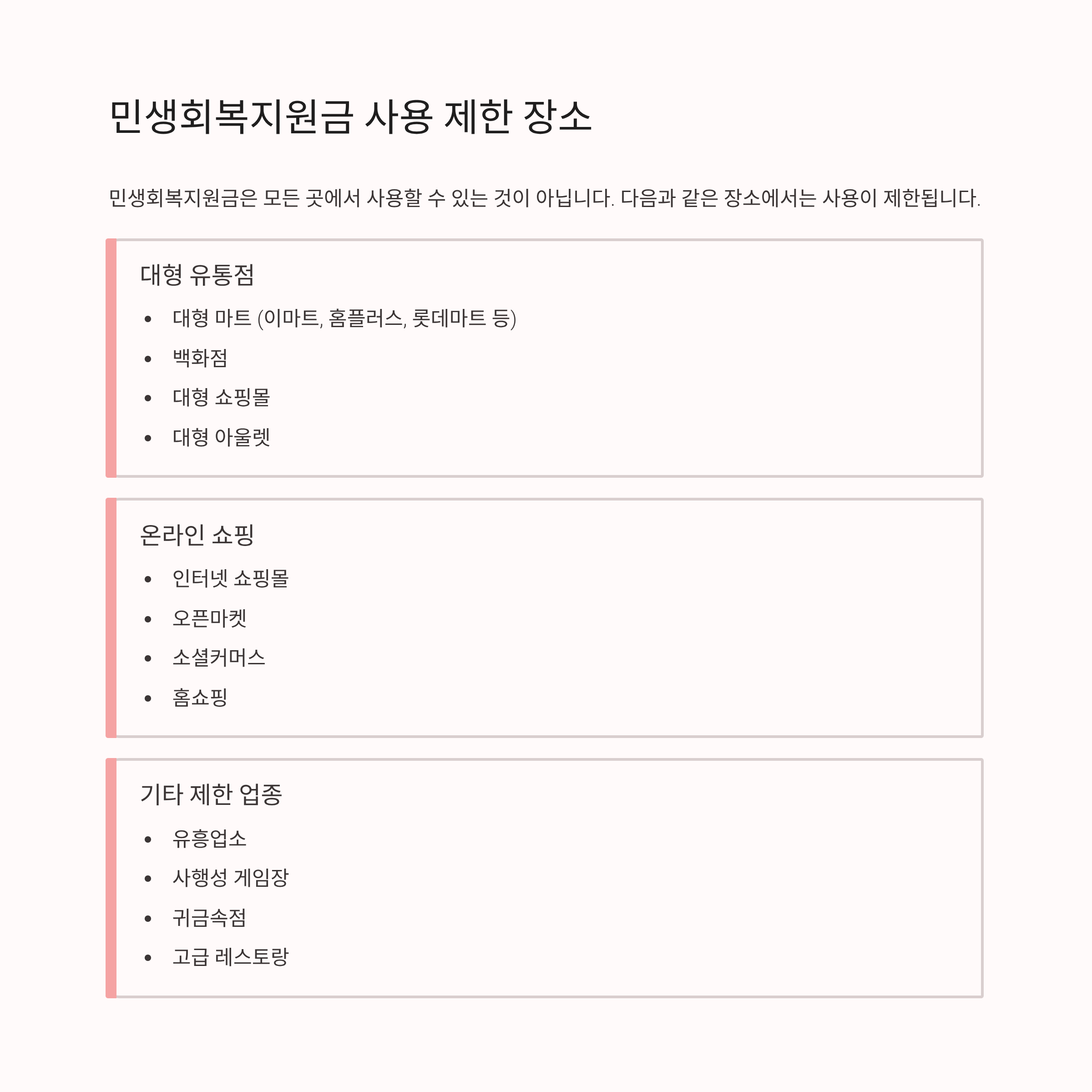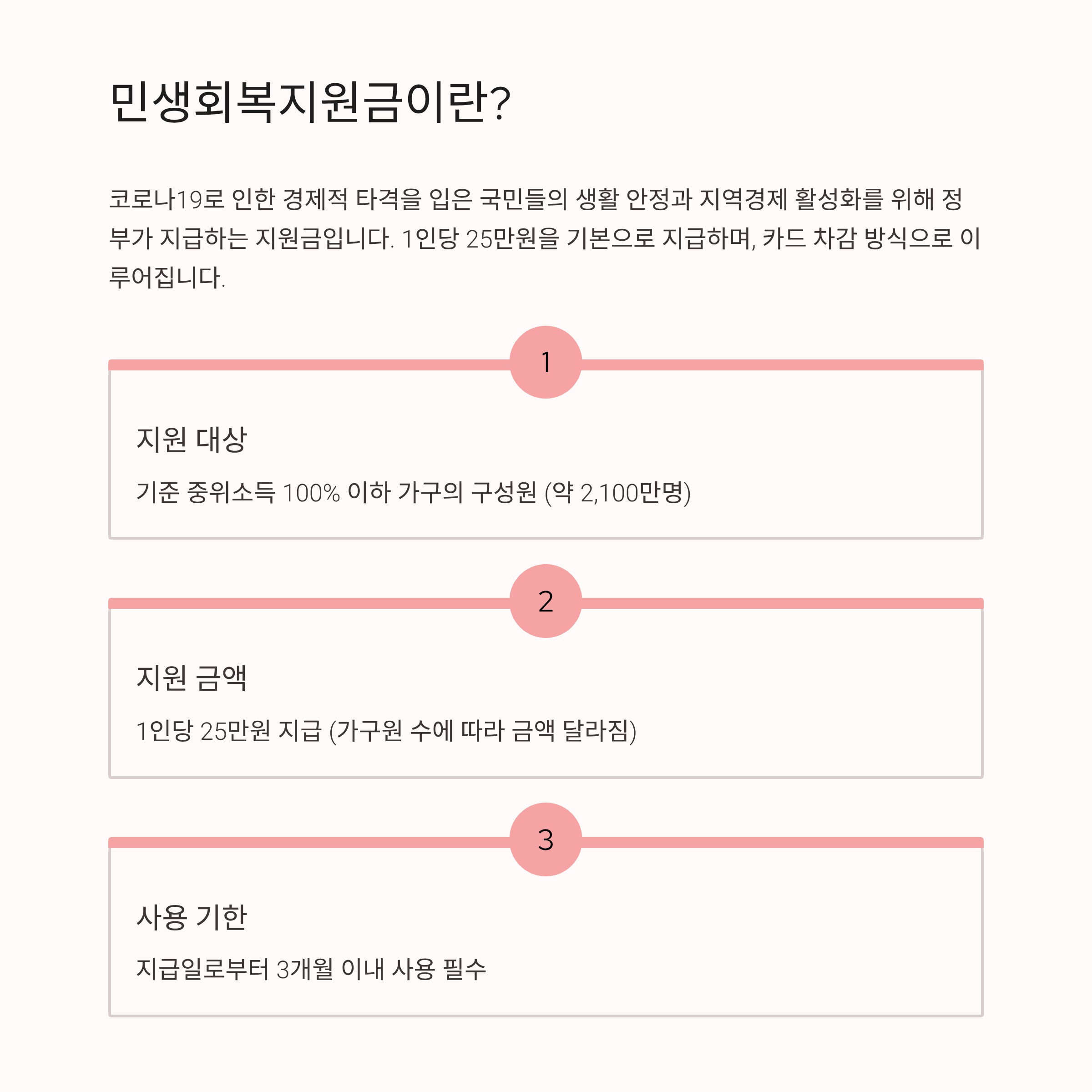 📋 목차💸 민생회복지원금이란?📍 사용처 확인 방법🏪 지역별 사용 가능 매장🛒 온라인 사용 가능 여부🚫 사용 제한 업종🎯 효율적인 사용 꿀팁❓ FAQ민생회복지원금은 코로나19로 어려움