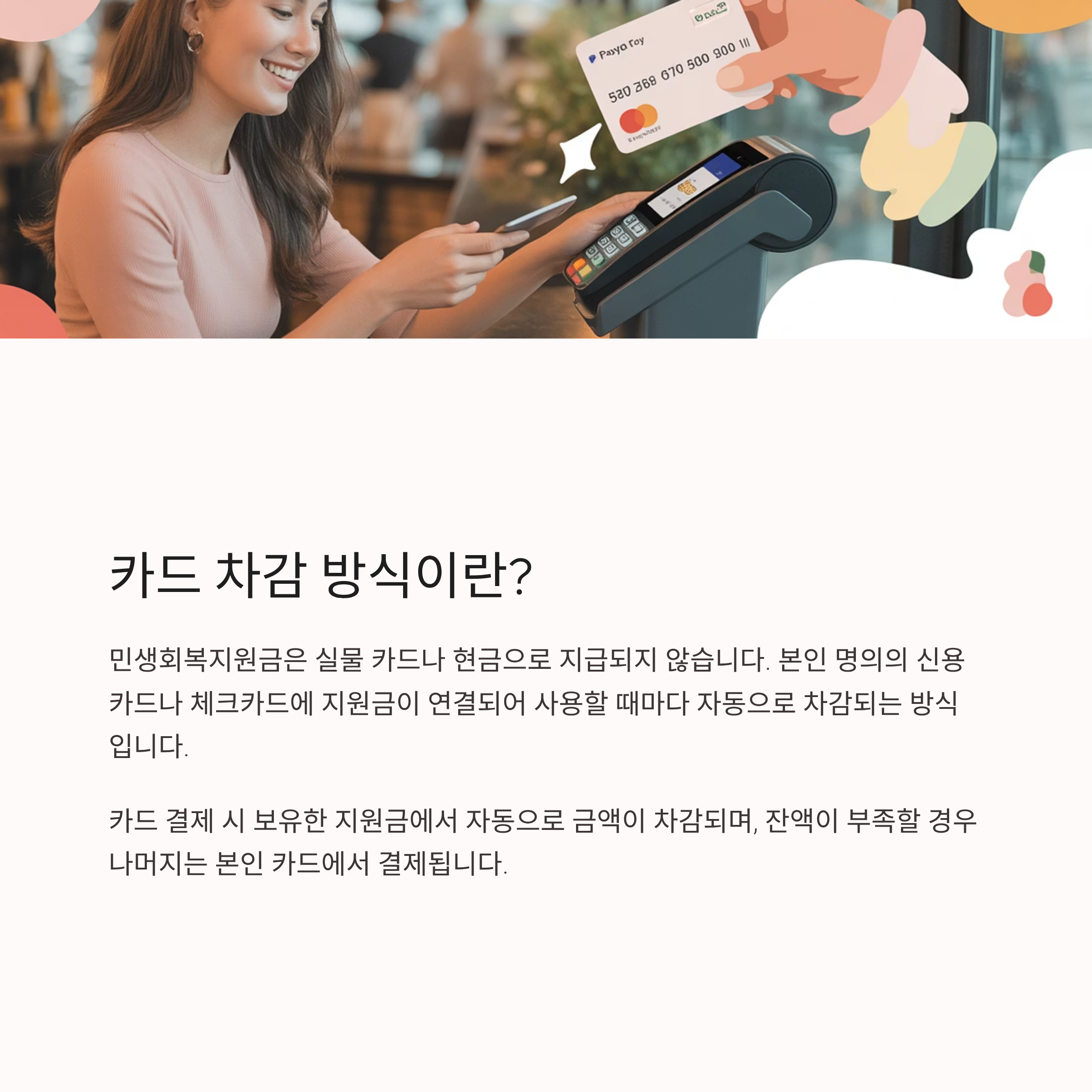 민생회복지원금의 핵심은 바로 ‘카드 자동 차감 시스템’이에요.