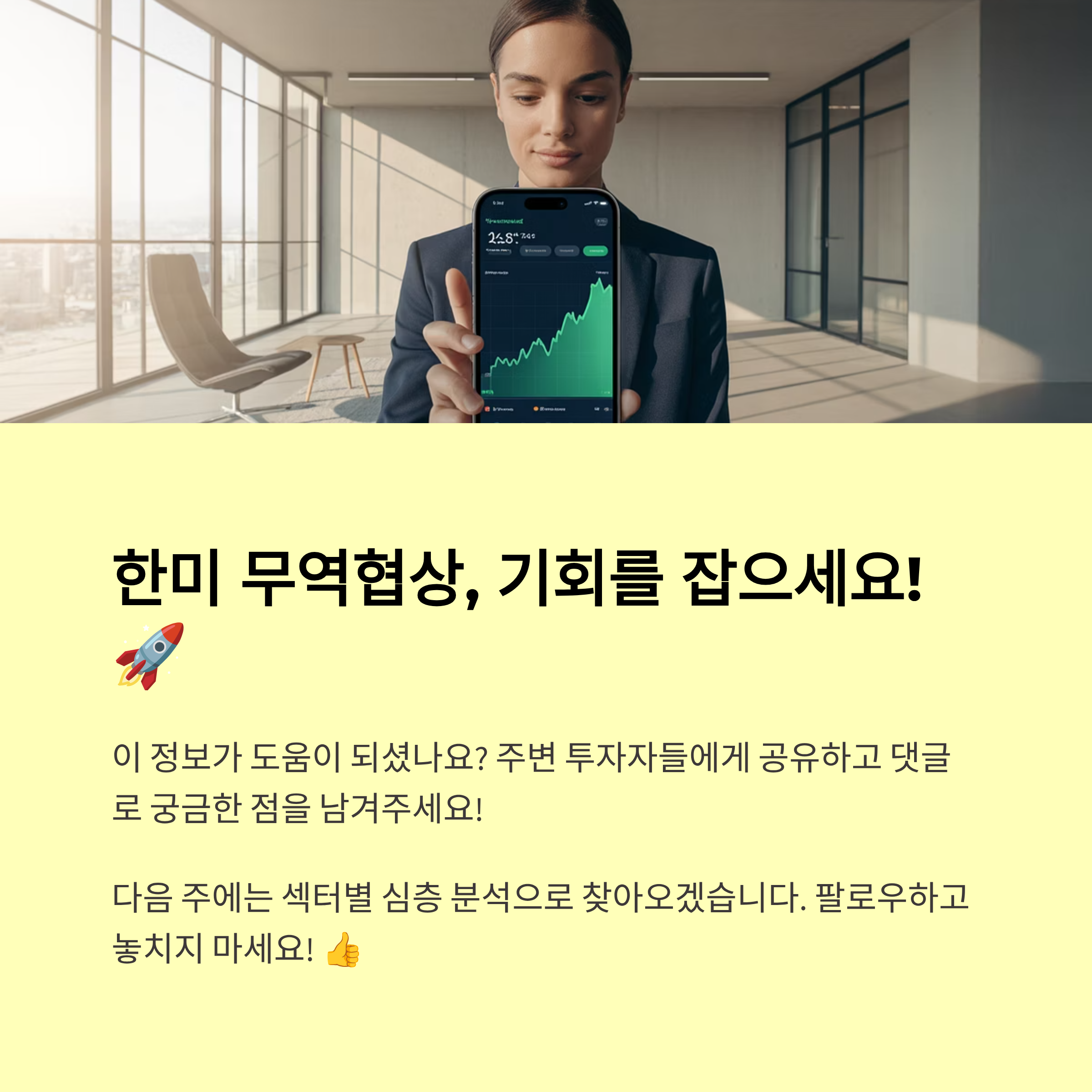 내가 생각했을 때 이번 협상은 단순한 무역 문제가 아니라 산업 구조와 투자 흐름에 직결되는 결정이라, 투자자라면 관련 산업의 수혜 가능성을 꼭 점검해봐야 해요.