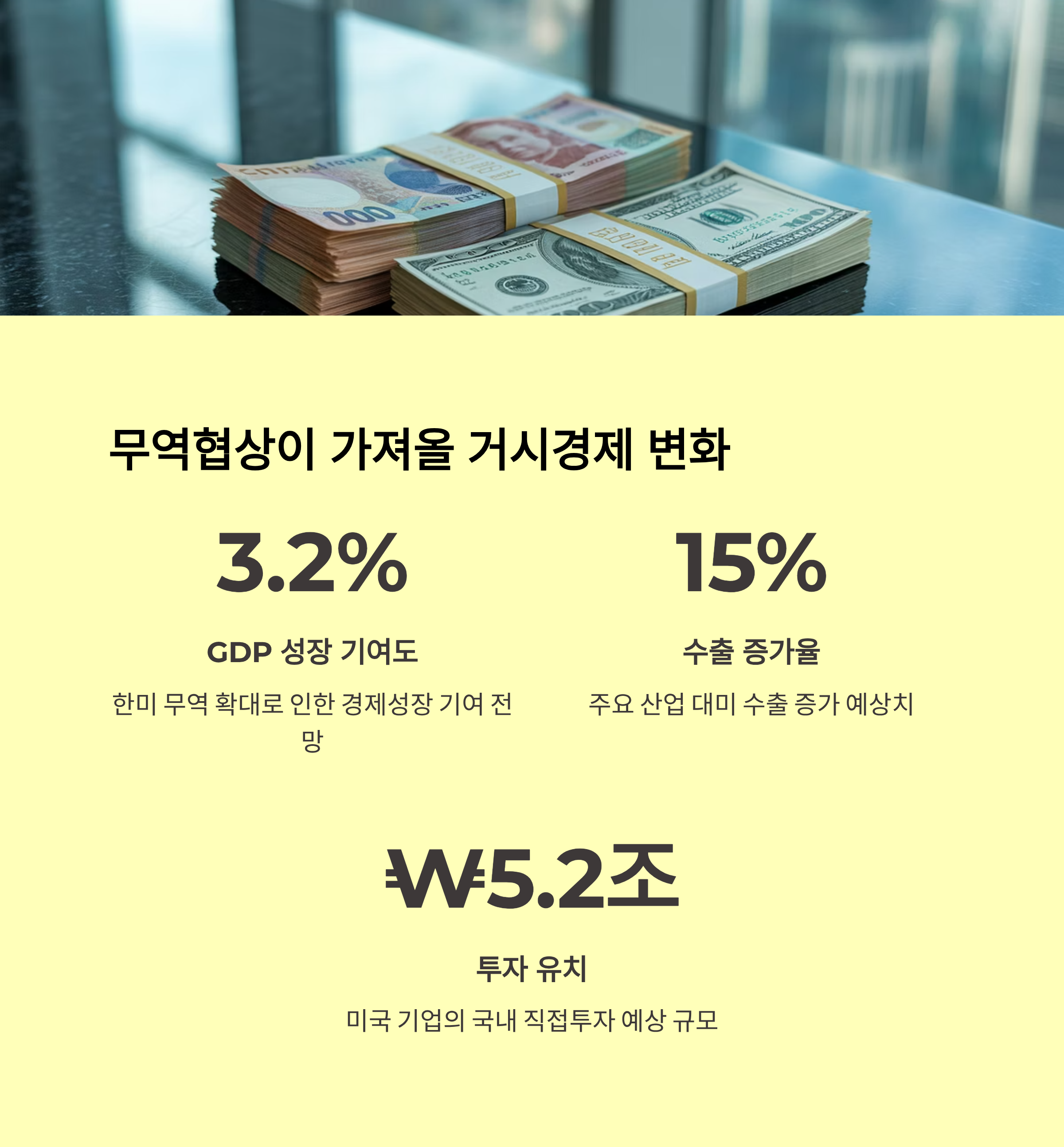 | 투자 | 한국의 미국 투자 확대 | 3,500억 달러 투자 합의 |