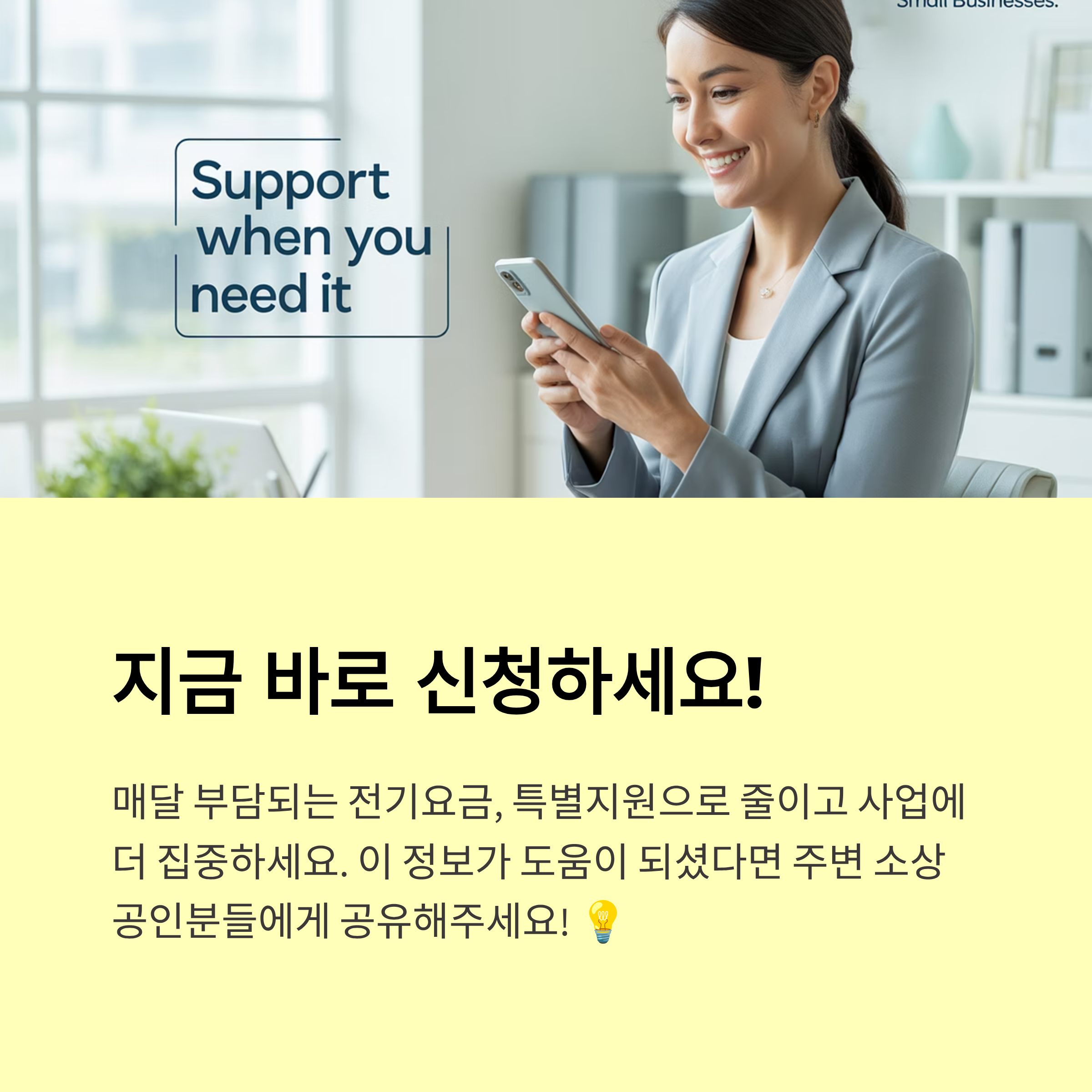 전기요금 지원 외에도 다양한 혜택을 놓치지 않는 현명한 사업 운영에 도움이 됩니다.