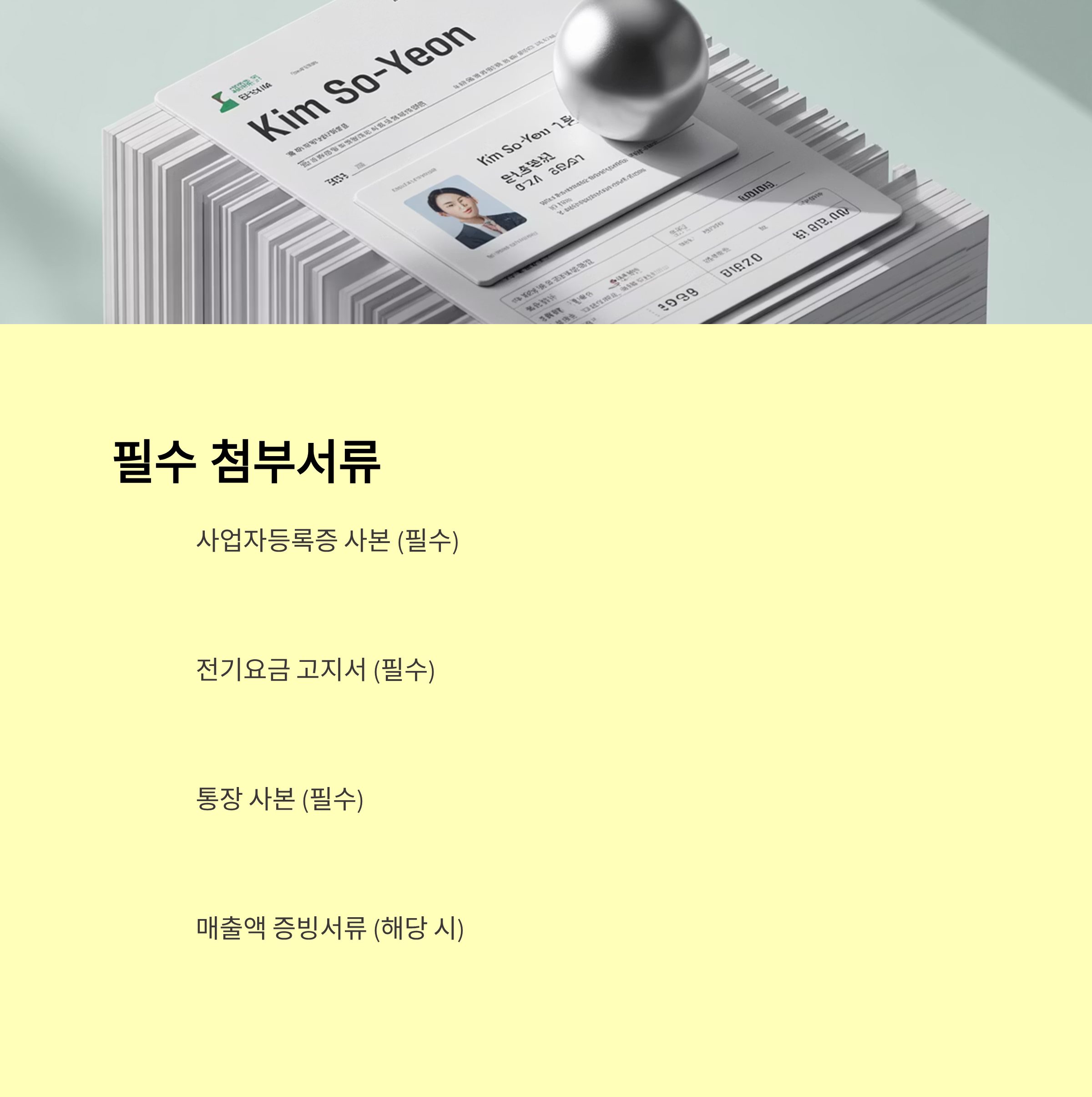 - 사업자등록증이 반드시 있어야 하며, 실질 사업장 운영이 확인되어야 합니다.