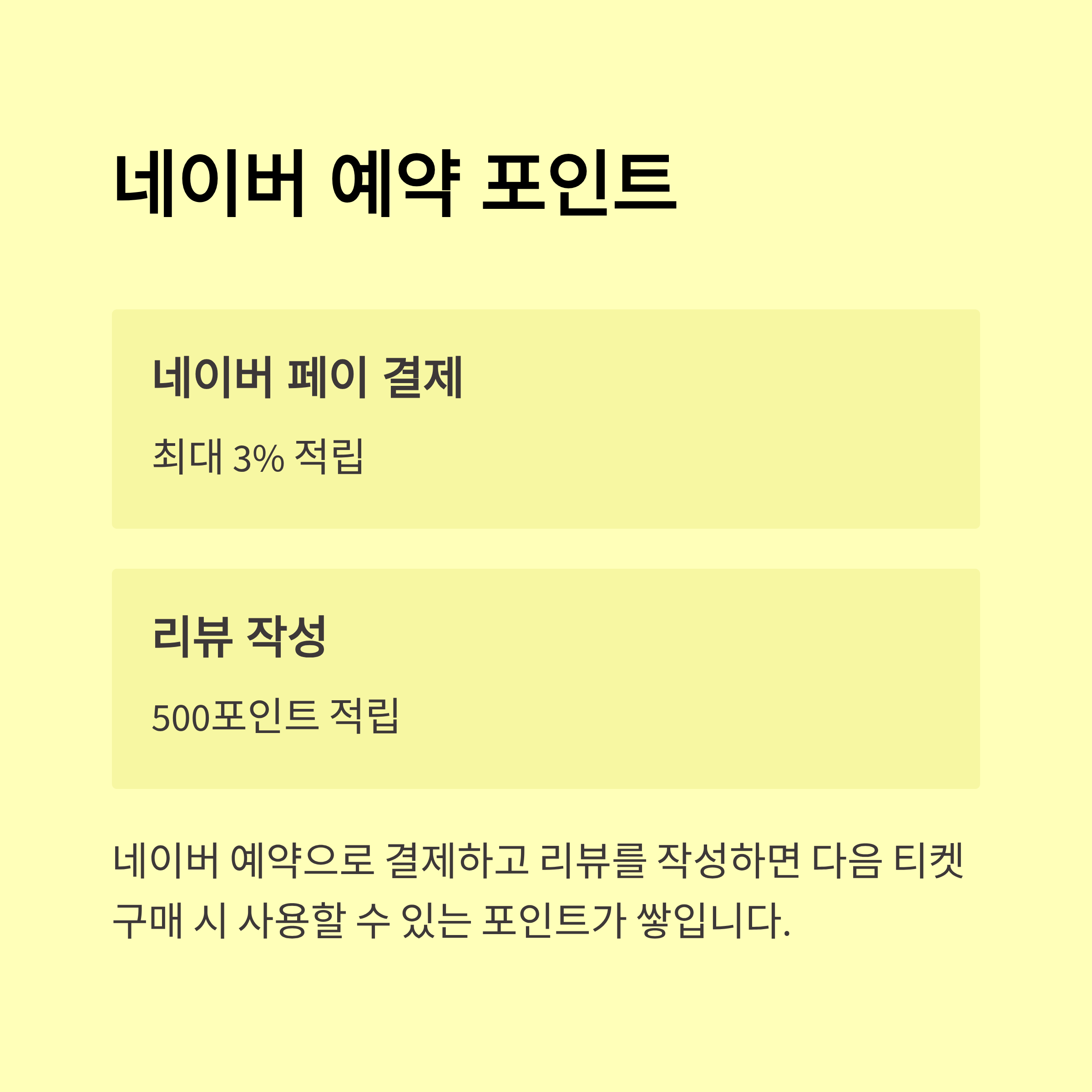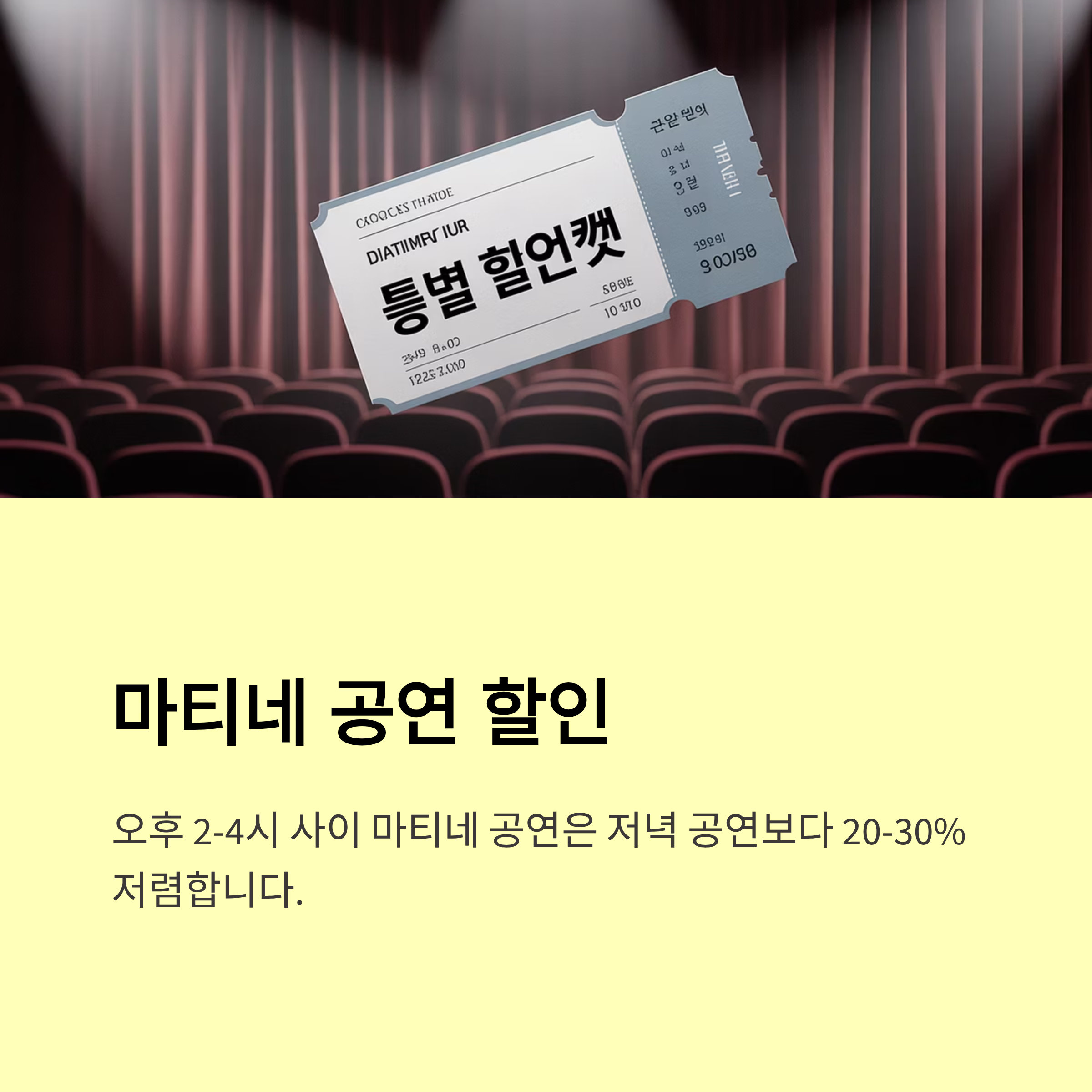- 예매플랫폼(인터파크, 네이버, 예스24 등) 쿠폰 – 신규가입, 시즌 할인, 포인트 적립 이벤트