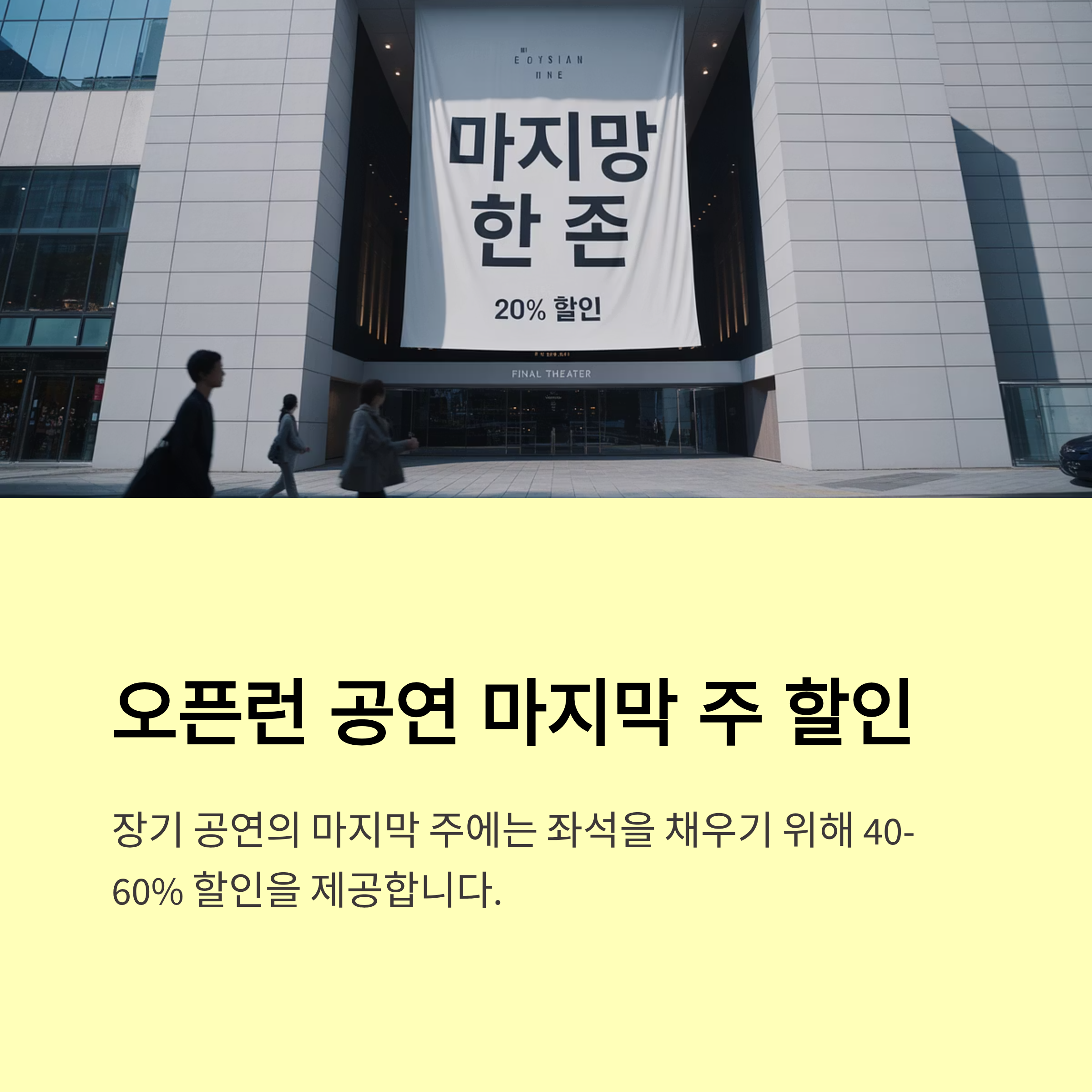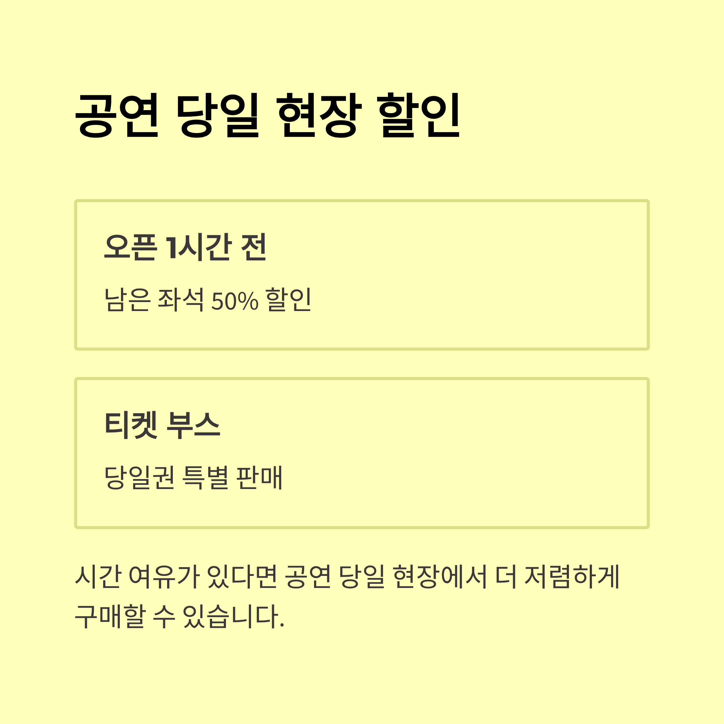 - 주최기관/공연장 직영 할인권 – 현장 발권, SMS·이메일·SNS 이벤트 등