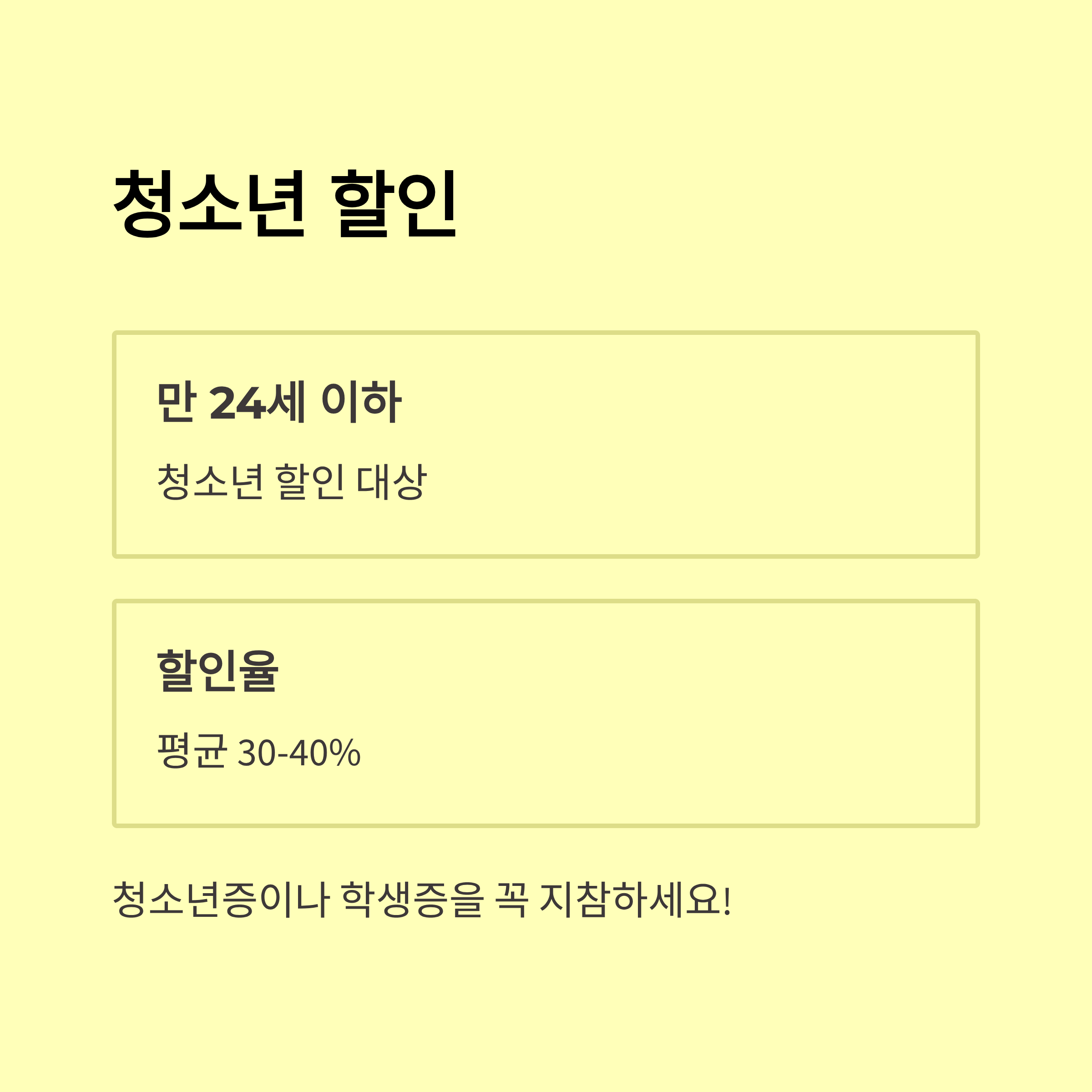 - 지자체·공연기관 할인이벤트: 지역 거주자 우대, 행사/축제 기간 우대(현장 수령)