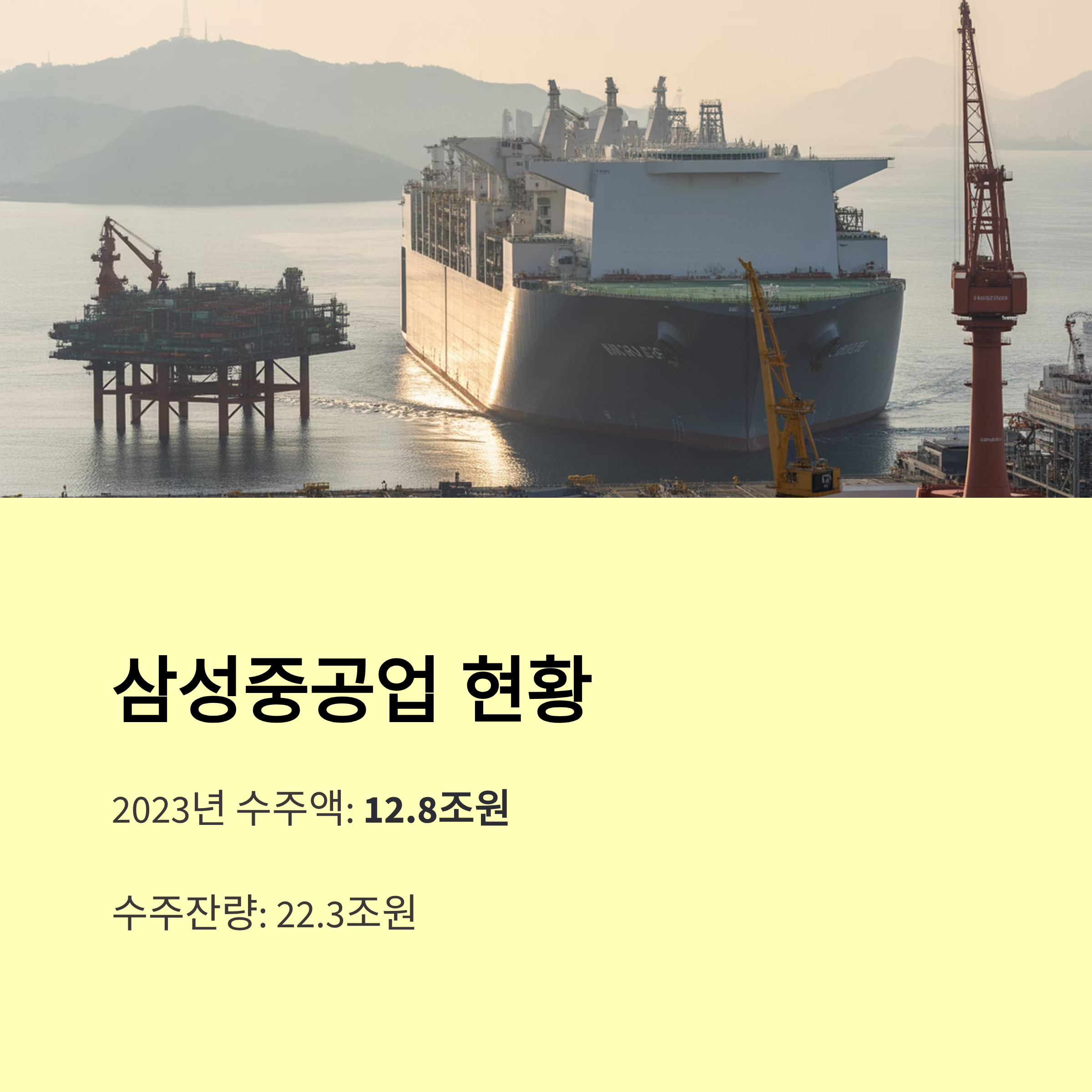 - 삼성중공업 : 해양플랜트·해양 구조물, 초대형 컨테이너선·친환경선 비중 확대