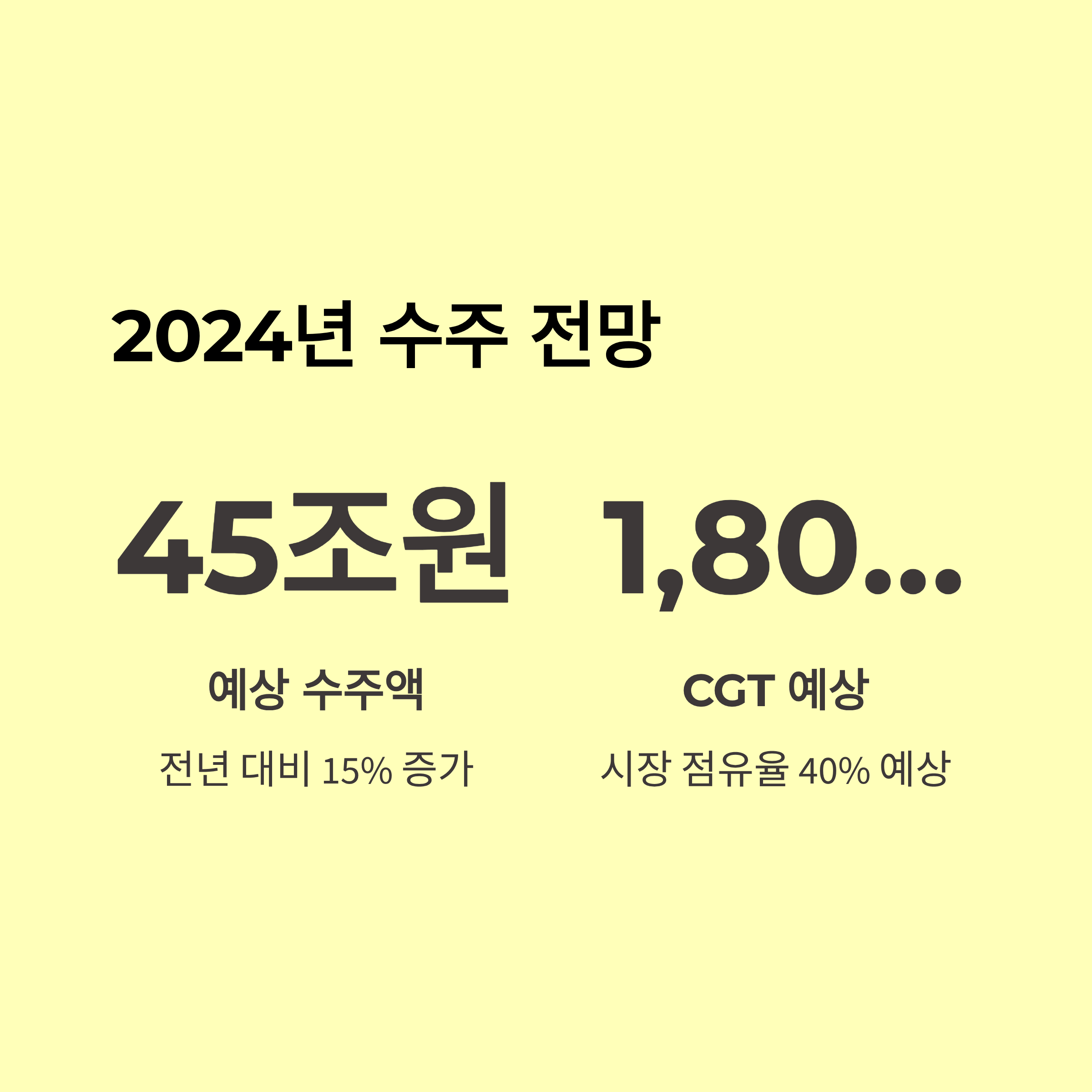 | 삼성중공업 | 매출 5.4조 / 영업이익 2,100억 (전년비 +41%) | 해양구조물·친환경선·플랜트 발주 증가 | 수주 원가경쟁, 환율리스크 |