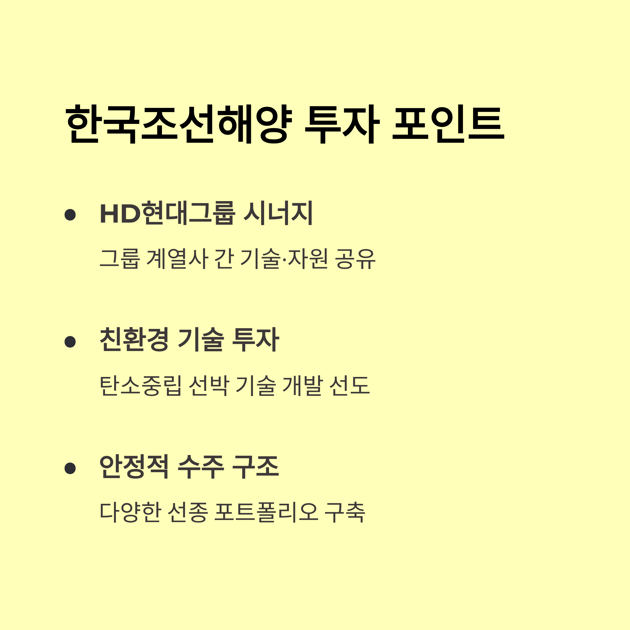 - 구조적 업황(기술, ESG, 정책 등)과 단기 시황(운임·환율·원자재) 동시 체크하면 안정적 운용 가능
