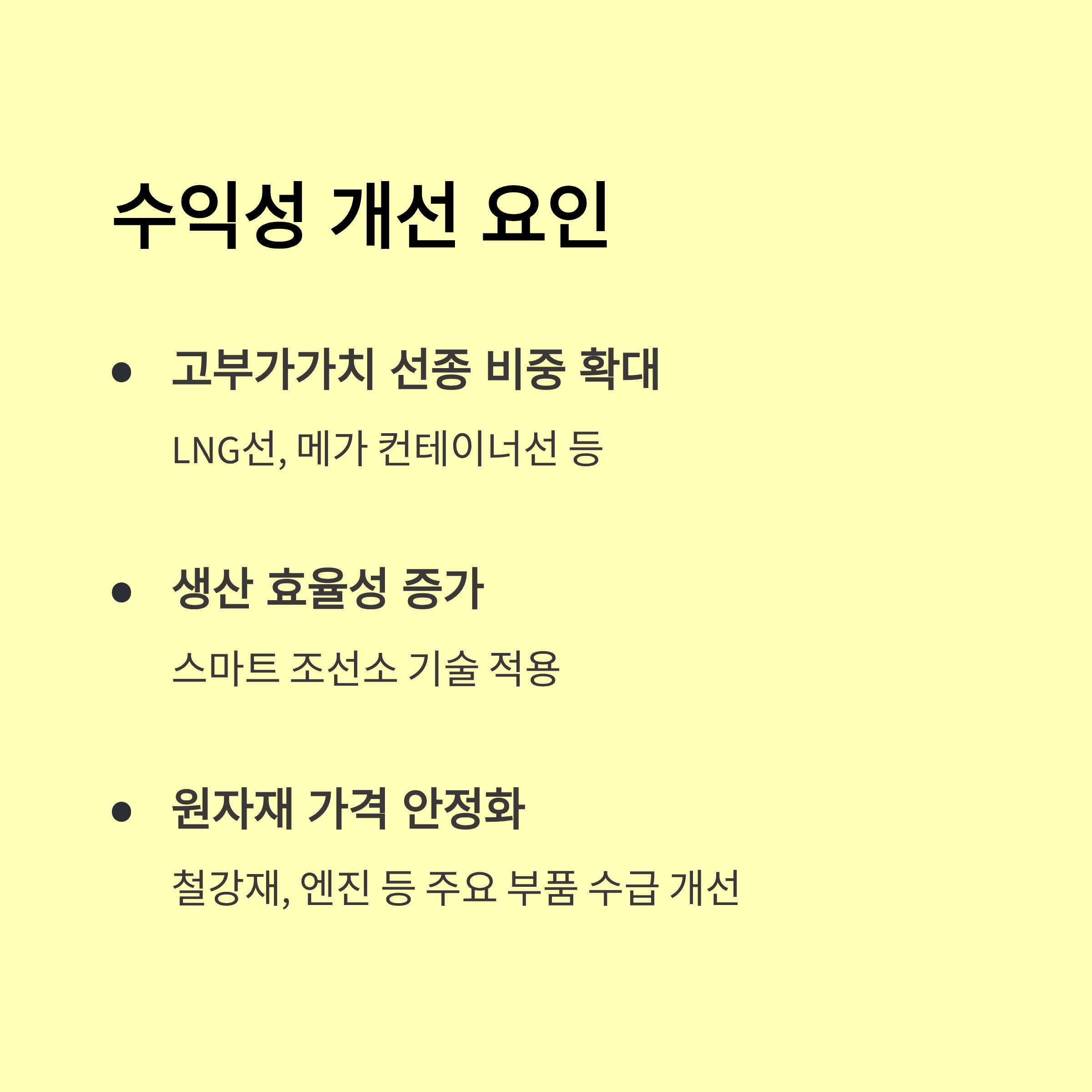 | 2025 3~4분기 | +5.5~6.9% | 스마트선박·플랜트 발주 대형화, 유가 상승 |