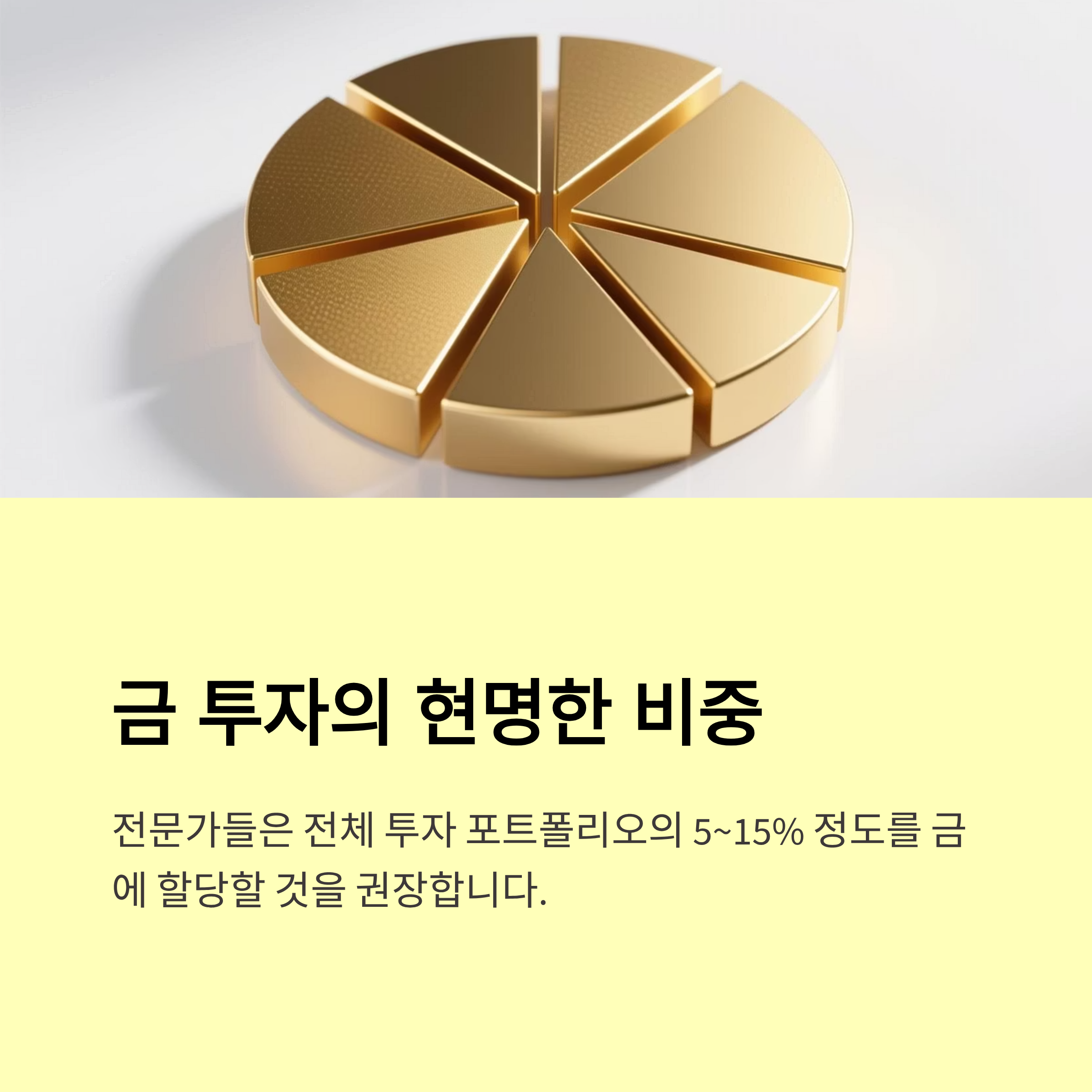 이런 이유들로 인해 많은 사람들이 "이제라도 금을 사야 하나?" 고민을 시작해요. 답은 "분산투자 관점에서 조금씩이라도 보유하는 게 좋다!"라는 거예요. 👛