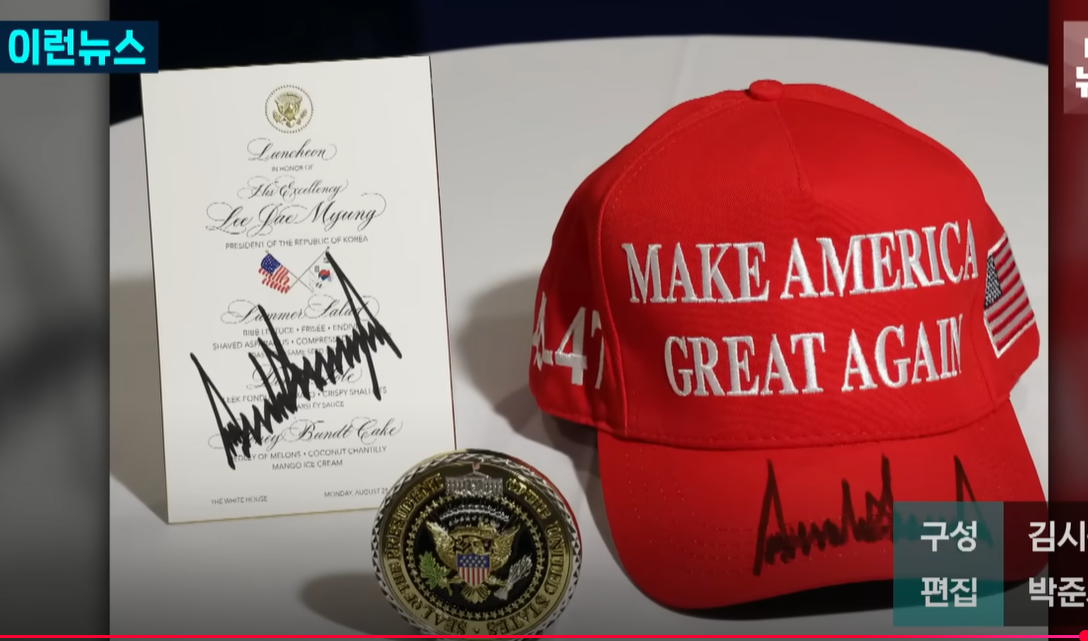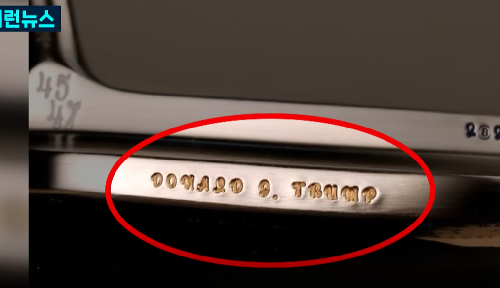 바로 백악관 방명록에 서명하면서 사용한 펜이 뉴스 화면에 잡힌 거예요. 해당 펜은 제나일이라는 수제 만년필 브랜드 제품이었지만, 그 안의 펜심은 모나미의 것이었다는 사실이 알려졌죠.