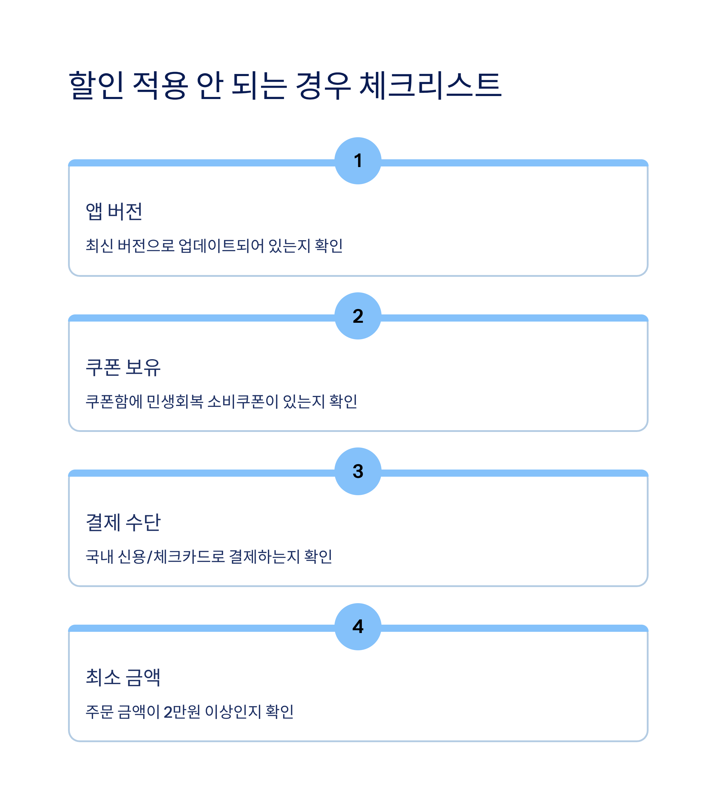 이제 더 이상 '결제 실패' 알림에 당황하지 마시고, 제가 알려드린 꿀팁으로 소중한 지원금을 사용해 맛있는 배달 음식을 마음껏 즐기시길 바랍니다!