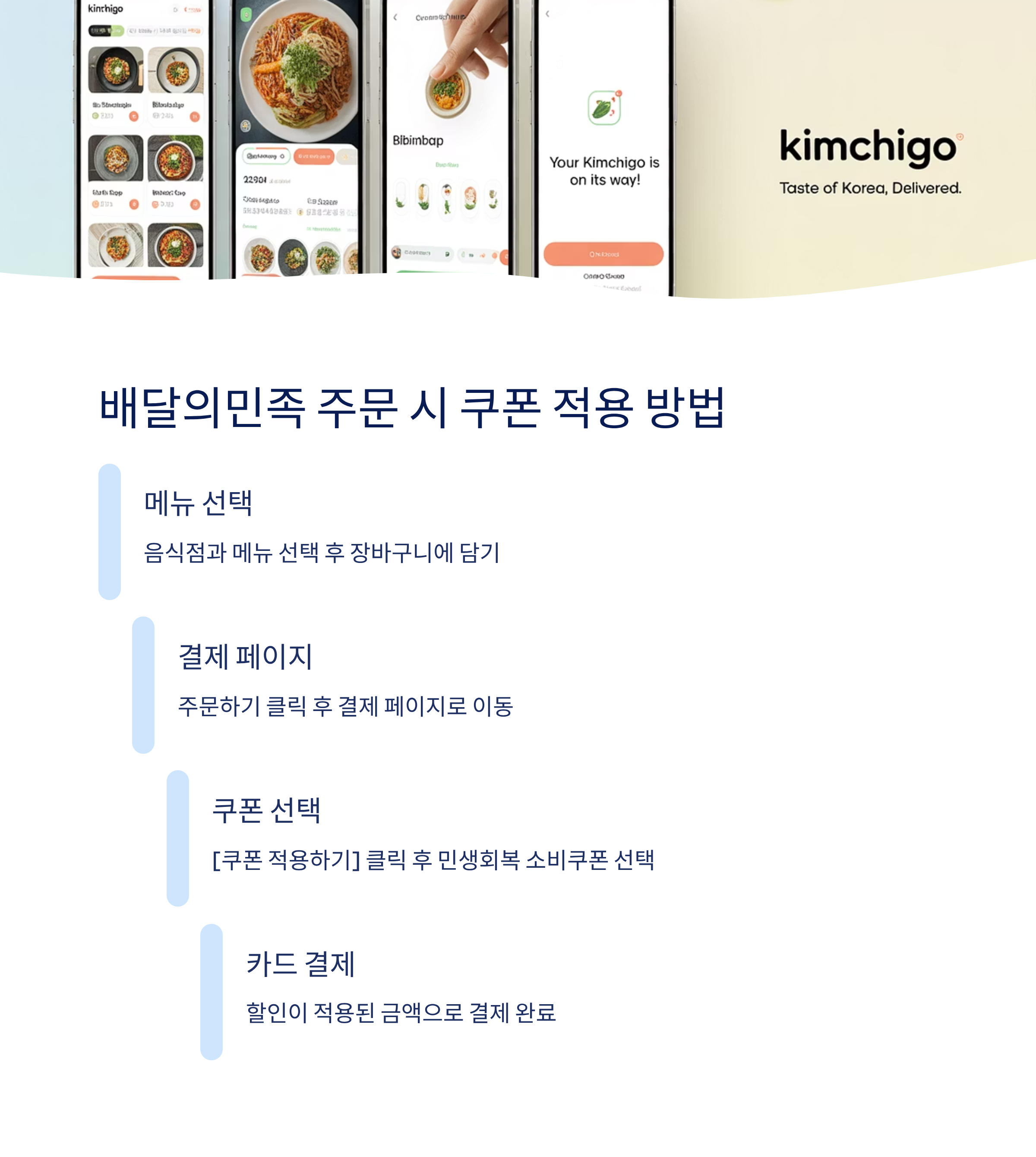 - 기사님께 카드 전달: 배달 기사님이 도착하시면, 민생회복 소비쿠폰이 충전된 실물 카드를 드려 결제하면 끝!