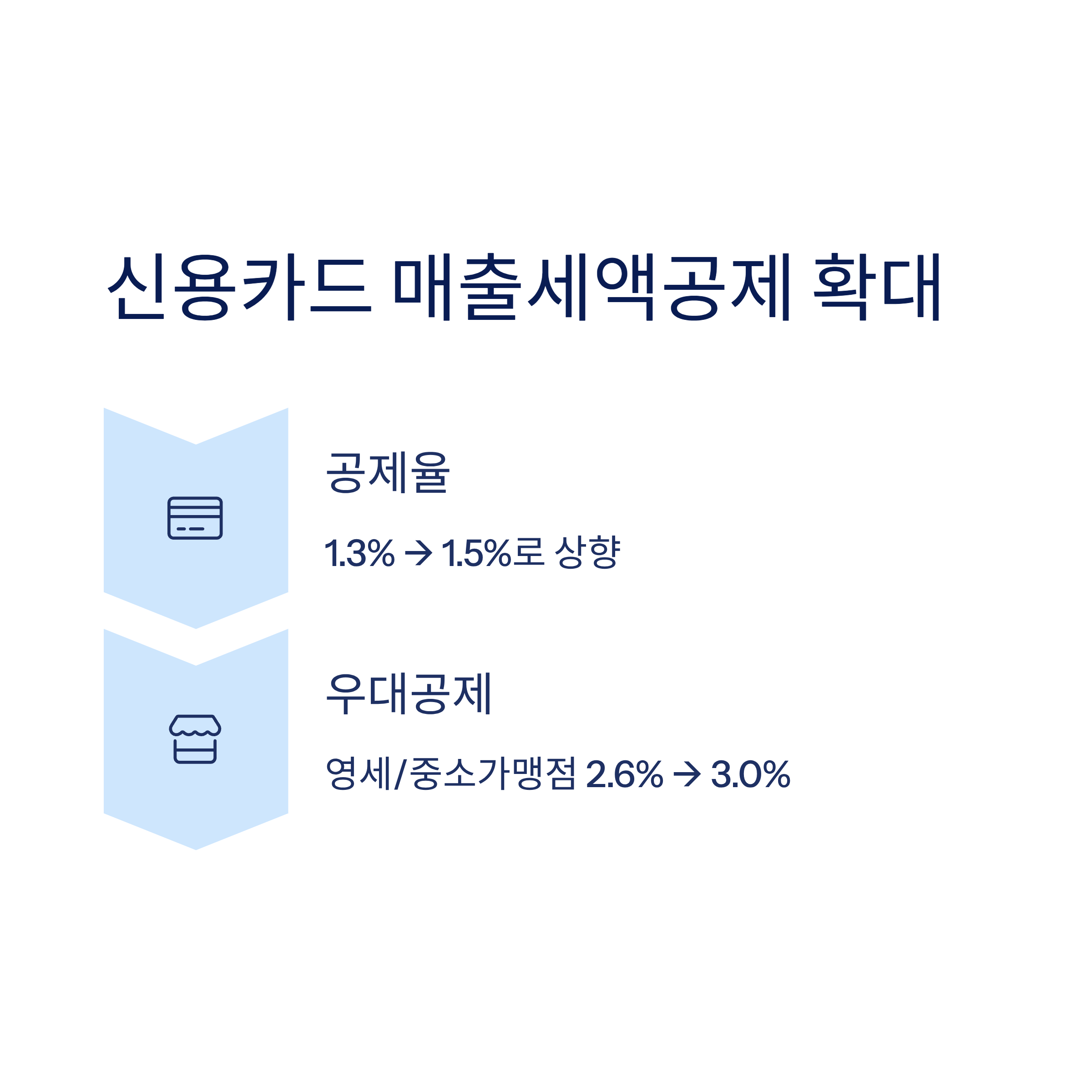 대표적으로 대중교통, 전통시장, 중소마트에서의 신용카드 사용분에 대한 부가가치세 환급이 시범 도입되고, 농수산물 유통업체에 대한 간이과세 기준이 상향 조정됐어요.