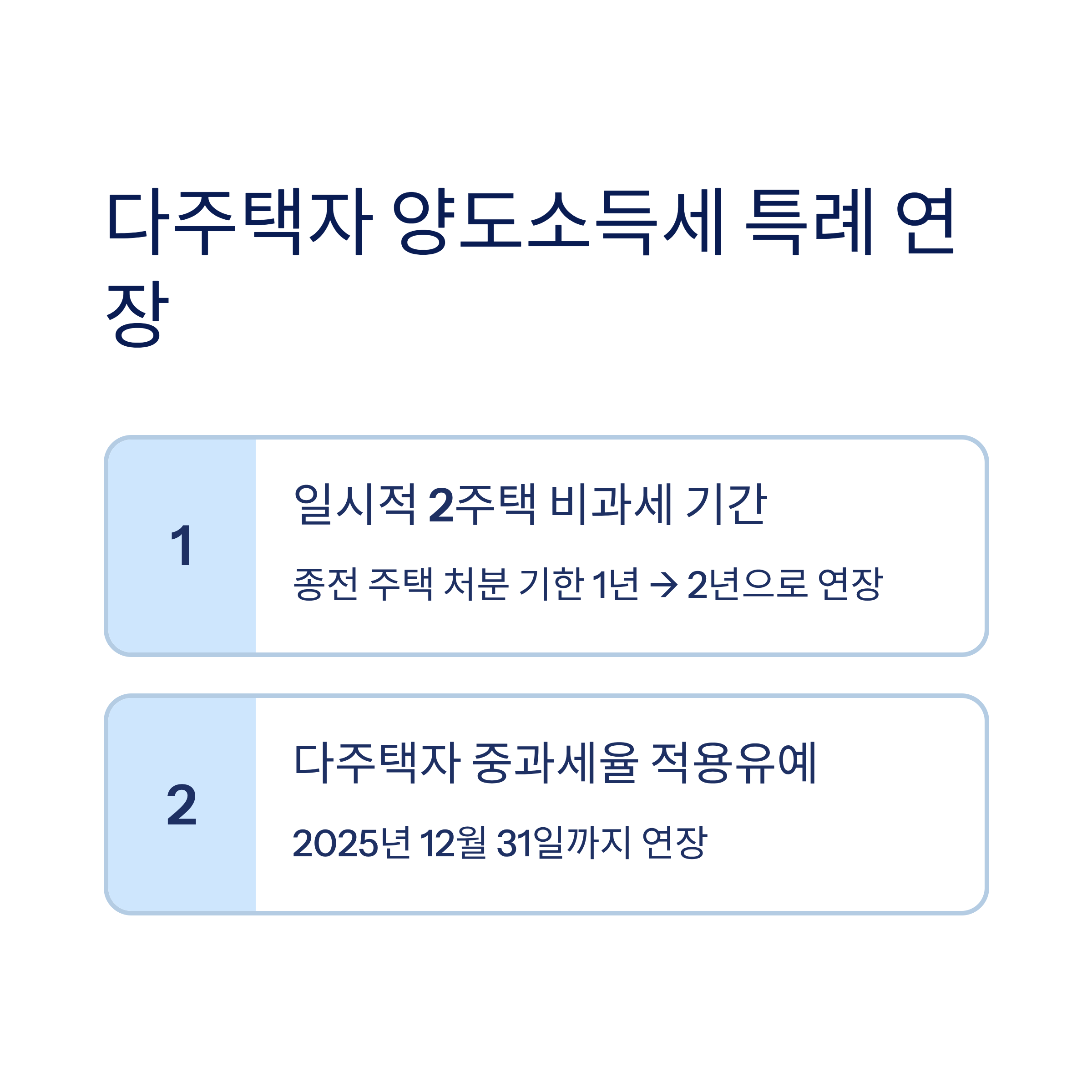 2025년 세제개편안에서 부동산 관련 세금 변화도 매우 큰 이슈예요. 주거 안정과 실수요자 보호에 중점을 두고 1주택자에 대한 세제 완화가 강화된 반면, 다주택자와 법인 소유 부동산은 규제가 유지돼요.