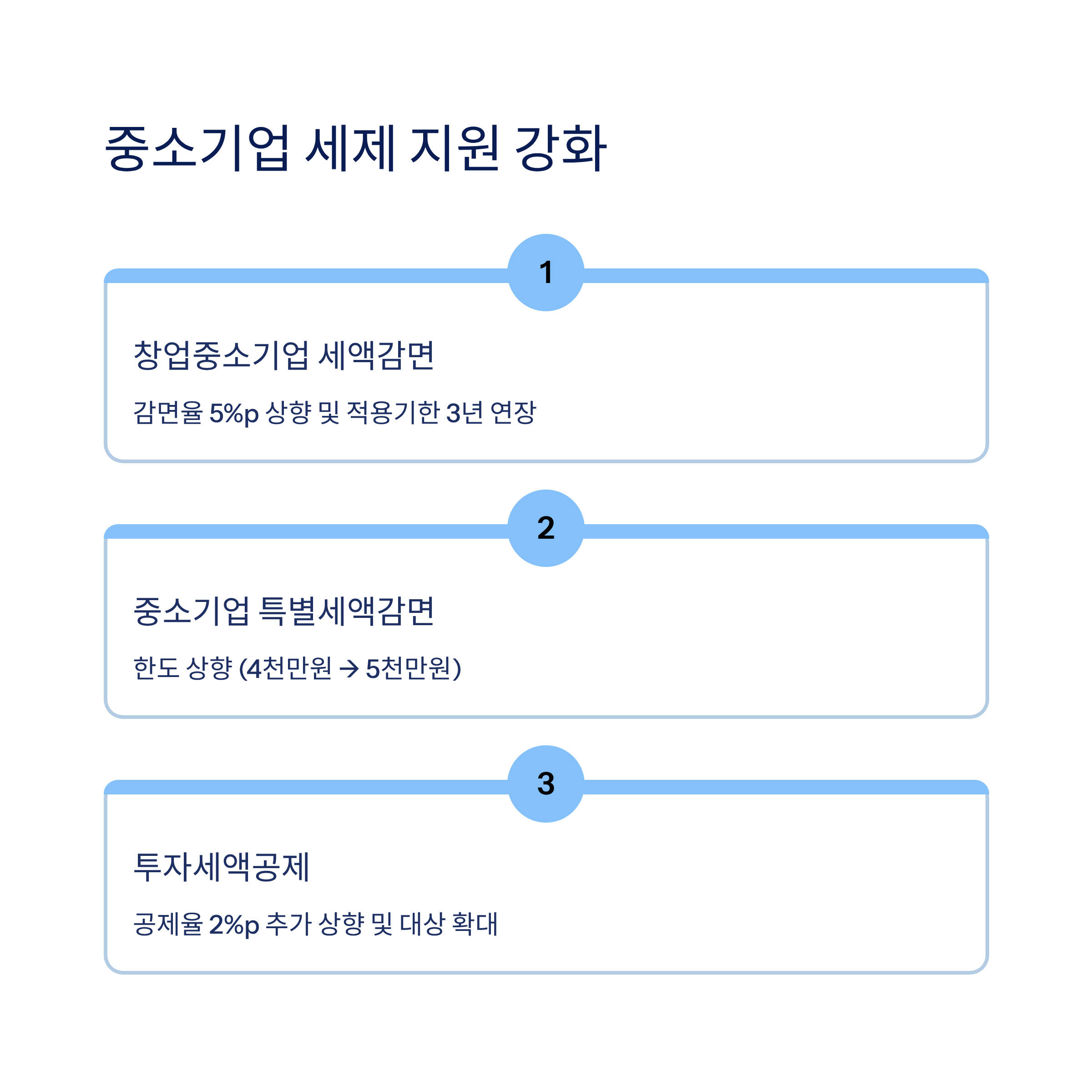 | 창업 세액공제 | 해당 없음 | 최대 2,000만 원 신설 |