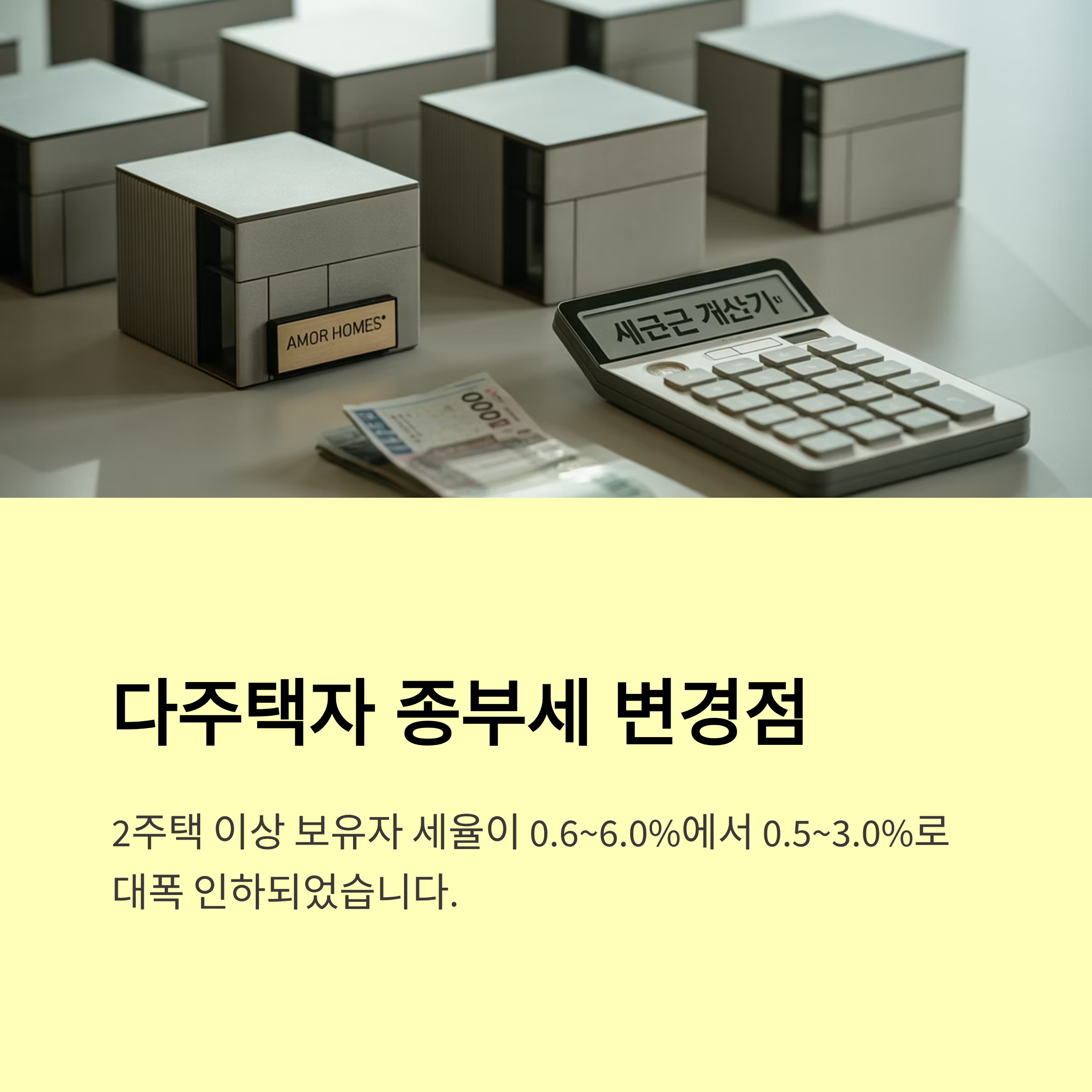 - 다주택자: 2주택(조정대상지역) 8%, 3주택 이상·법인 12% 중과세율 유지(추후 일부 완화 검토 중).