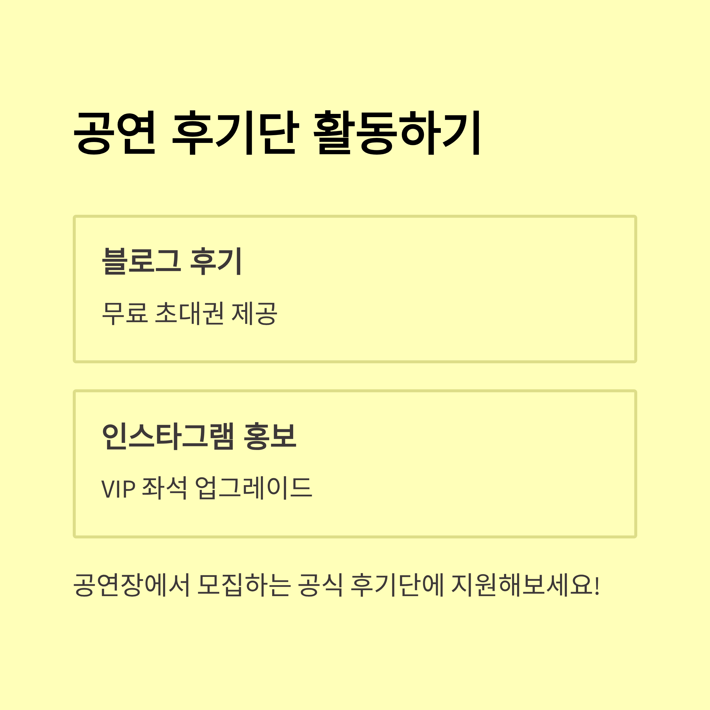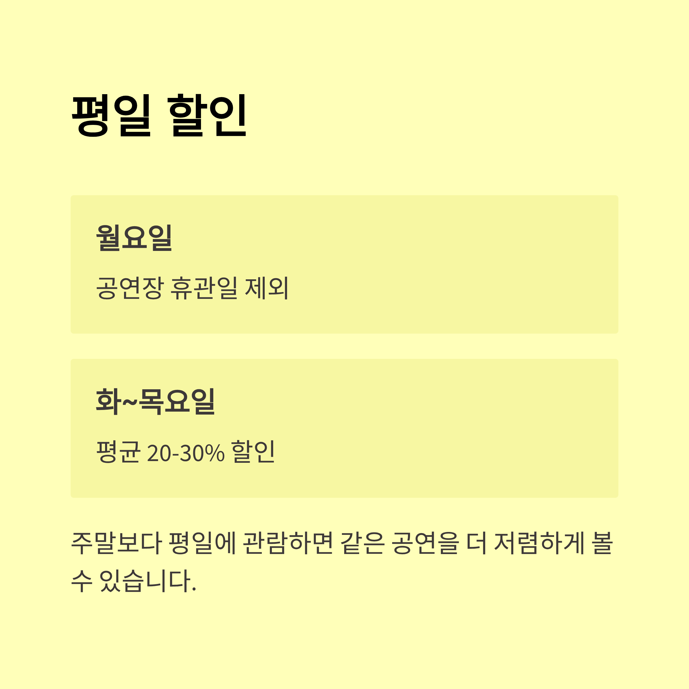 - 주최기관/공연장 직영 할인권 – 현장 발권, SMS·이메일·SNS 이벤트 등