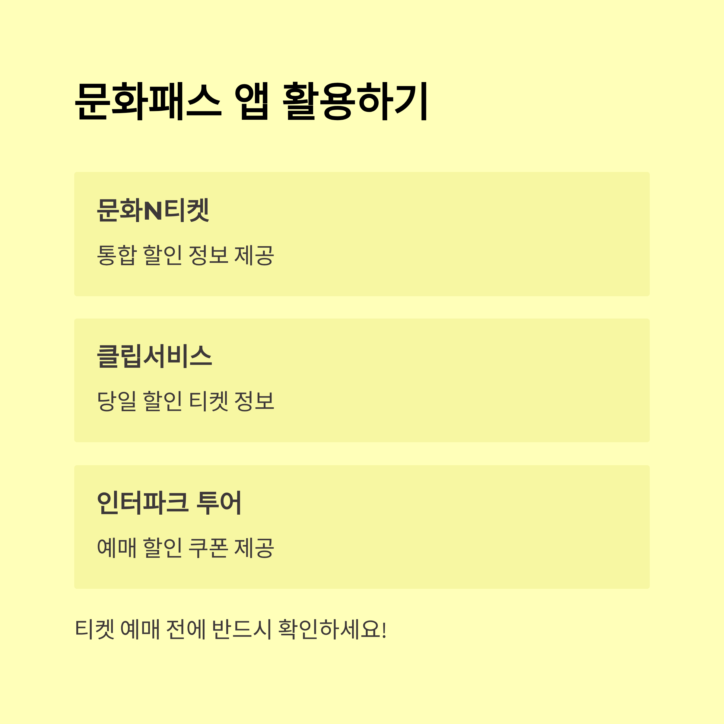 - 사용처(예: 공연·전시관, 온라인 예매, 박물관 등), 사용기한 확실히 사전 체크