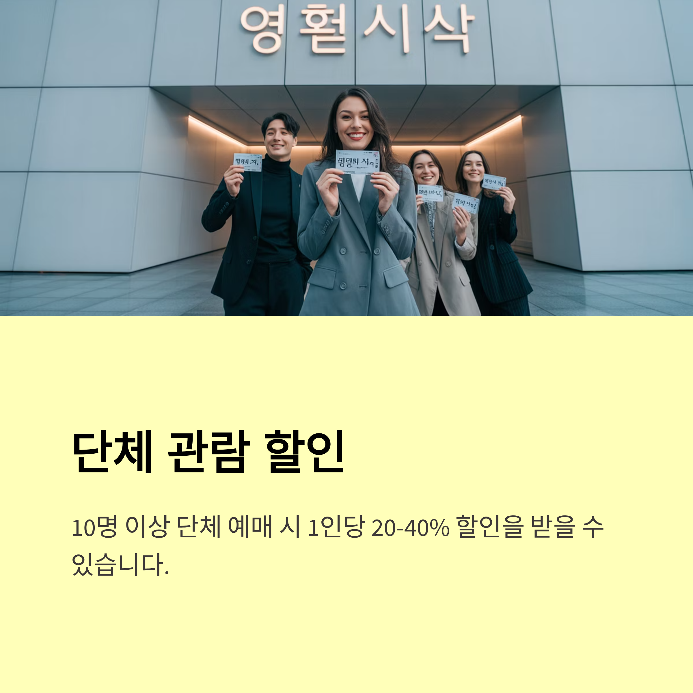 - 지자체·공연기관 할인이벤트: 지역 거주자 우대, 행사/축제 기간 우대(현장 수령)