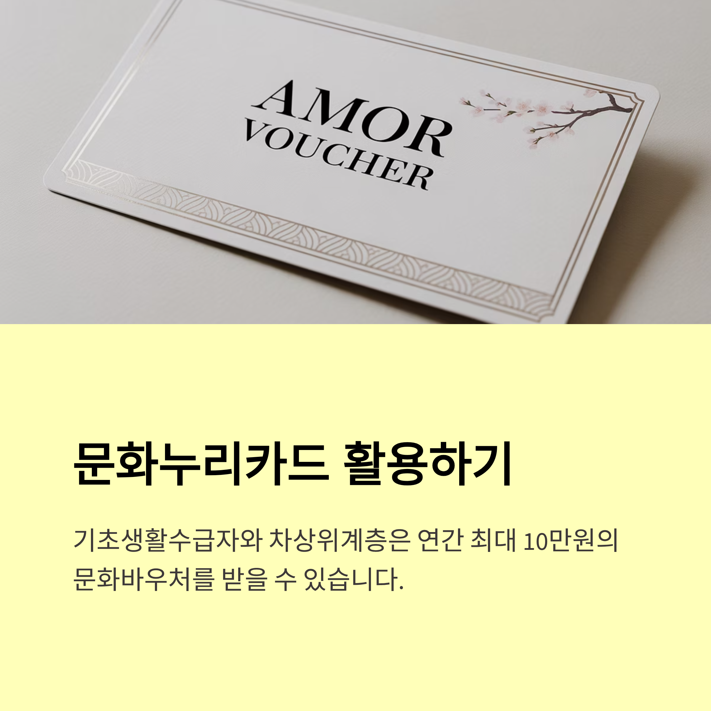- 문화누리카드/문화소비쿠폰 – 복지대상(저소득, 청년 등)에게 일정 금액 문화포인트 지급