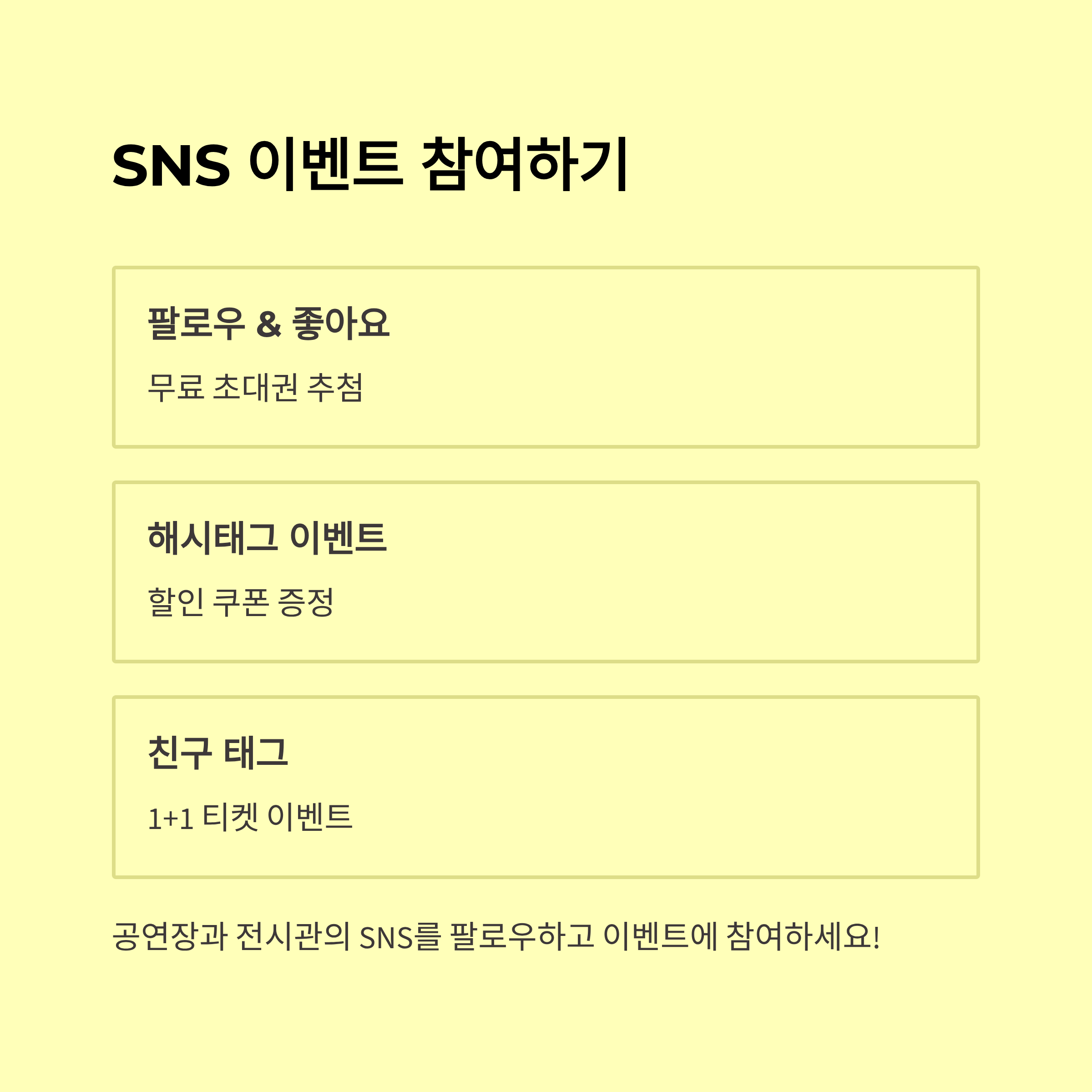 - 신청 개시일 오전, 선착순/이벤트 종료 전 바로 신청: 인기 공연·전시 예매권 조기 소진 예방