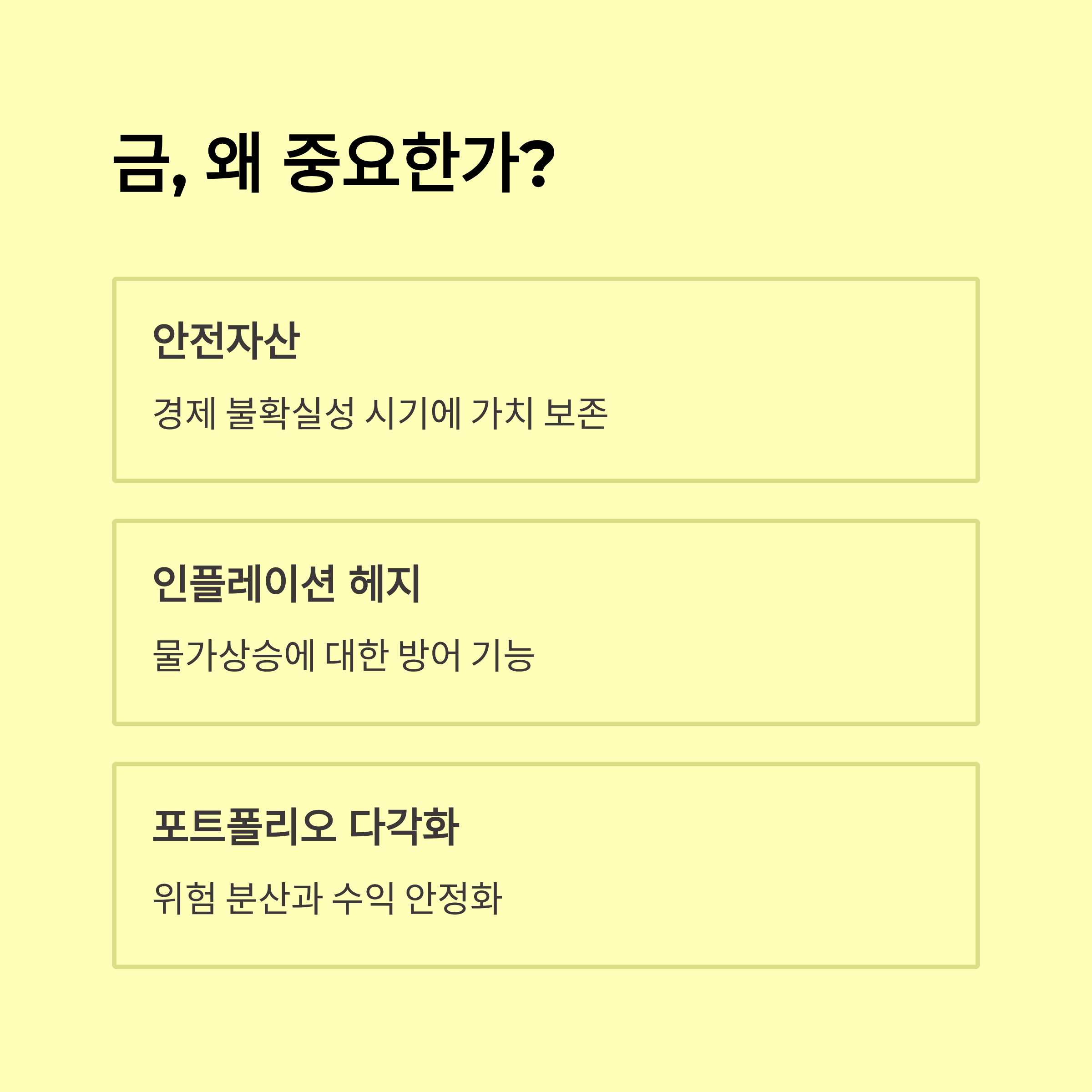 - 장기(5년): 신흥국·중앙은행 매입·안전자산 포트폴리오의 구조적 확대, 글로벌 위기 반복 시 핵심자산 지위 공고화