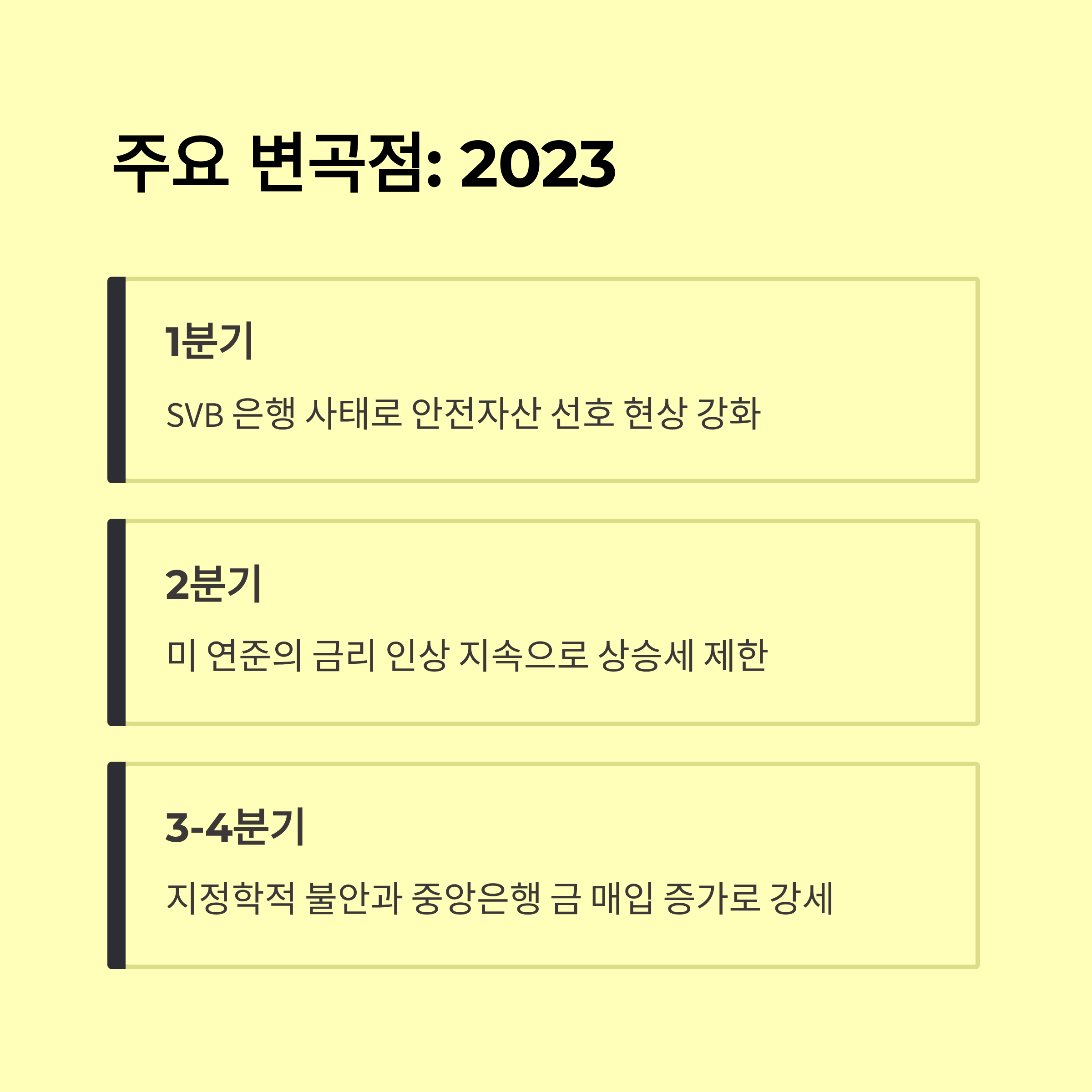 | 2023 | 2,078 | 44,100 | 금리인상 마무리/달러 약세 |