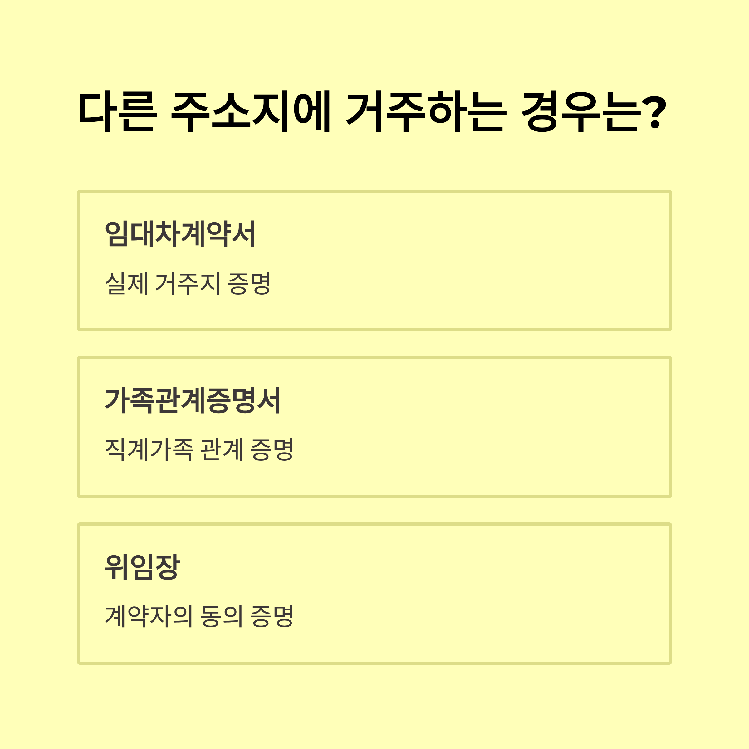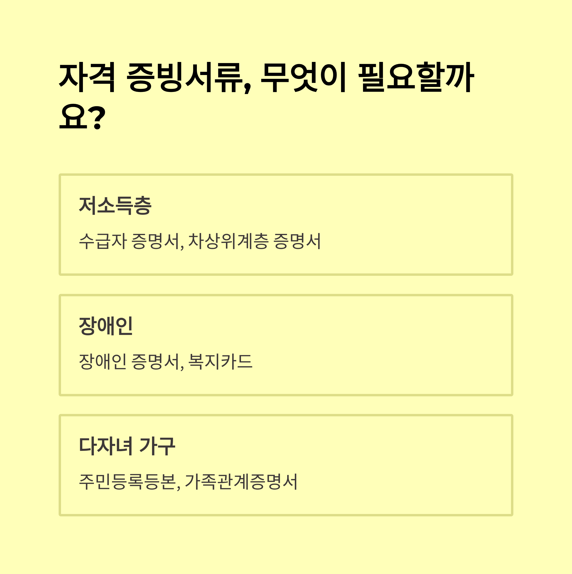 - 다자녀 가구: 가족관계증명서 최신본, 주소지 일치 확인 필수