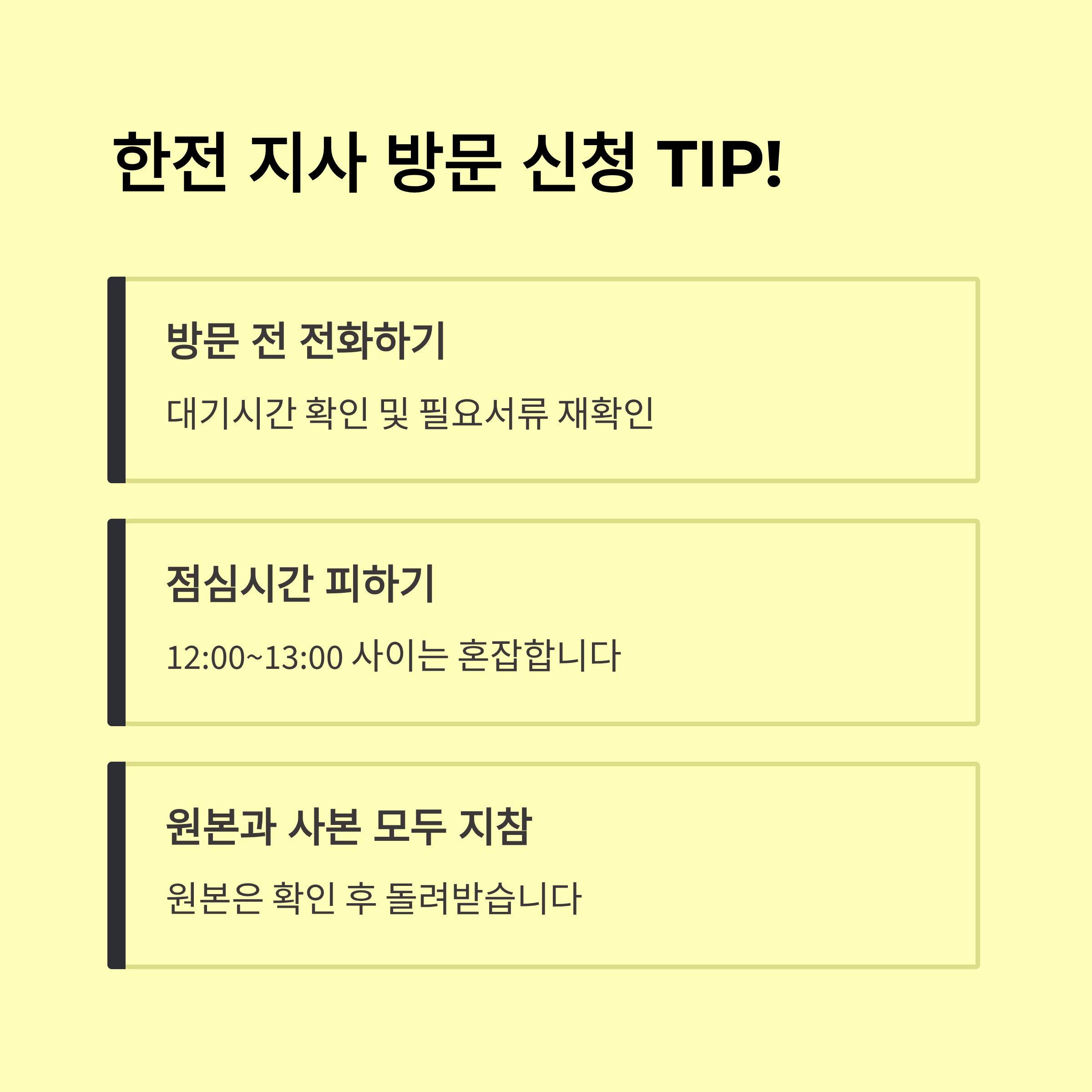 - 모바일: 한전 모바일 앱에서 빠르게 가능, 본인인증/서류스캔/사진 제출 편리