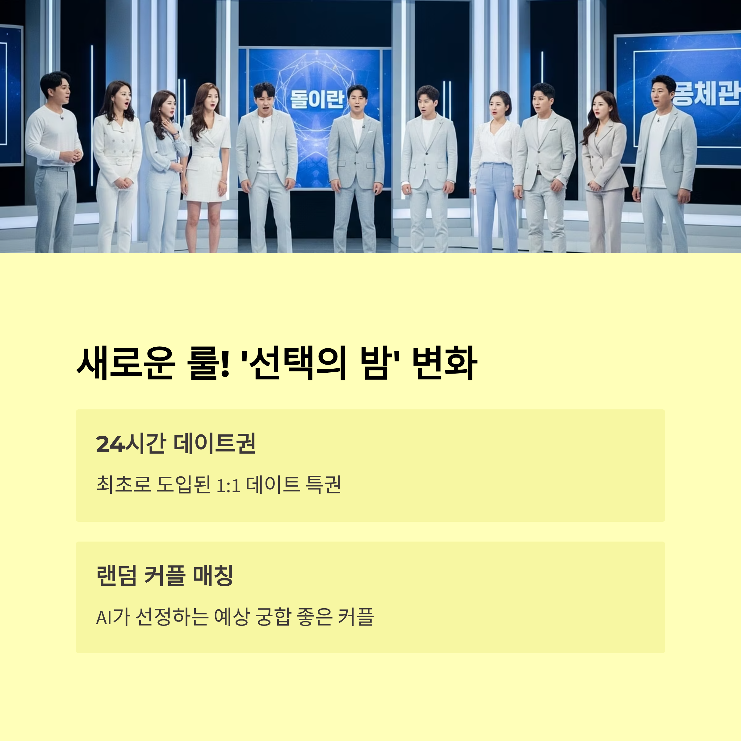 이번 회차에서 제작진은 ‘랜덤 데이트’와 ‘1:1 대화’라는 장치를 활용해 출연자들의 심리를 극대화했습니다. 각자 마음의 문이 어느 방향으로 열리고 있는지를 교차 편집으로 부각시켰고, 인터뷰와 현장 대화를 번갈아 넣어 인물의 내면과 표정 변화를 세밀하게 담았습니다. 특히 새벽까지 이어진 정숙·영철의 대화, 마지막 예고에서의 영수 발언과 상철·옥순의 반응은 다음 회차에 대한 기대를 폭발적으로 끌어올렸습니다.