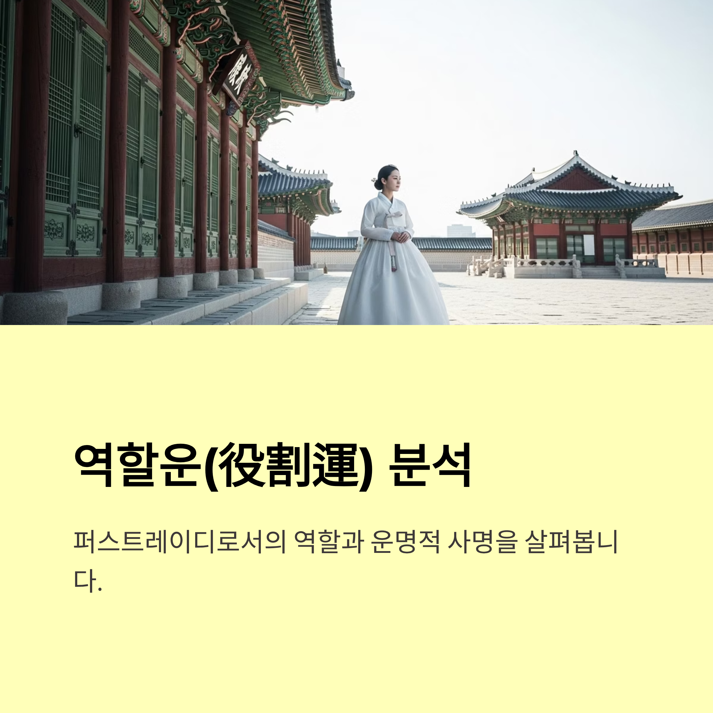 연주(年柱)는 조상·가문과 관련이 깊은데, 그녀의 경우 전통적인 가치와 현대적 사고를 함께 품는 특징이 보입니다. 월주(月柱)는 청년기와 사회 진출 초기의 운을 나타내며, 이 시기에 중요한 전환점을 맞이했을 가능성이 높아요.