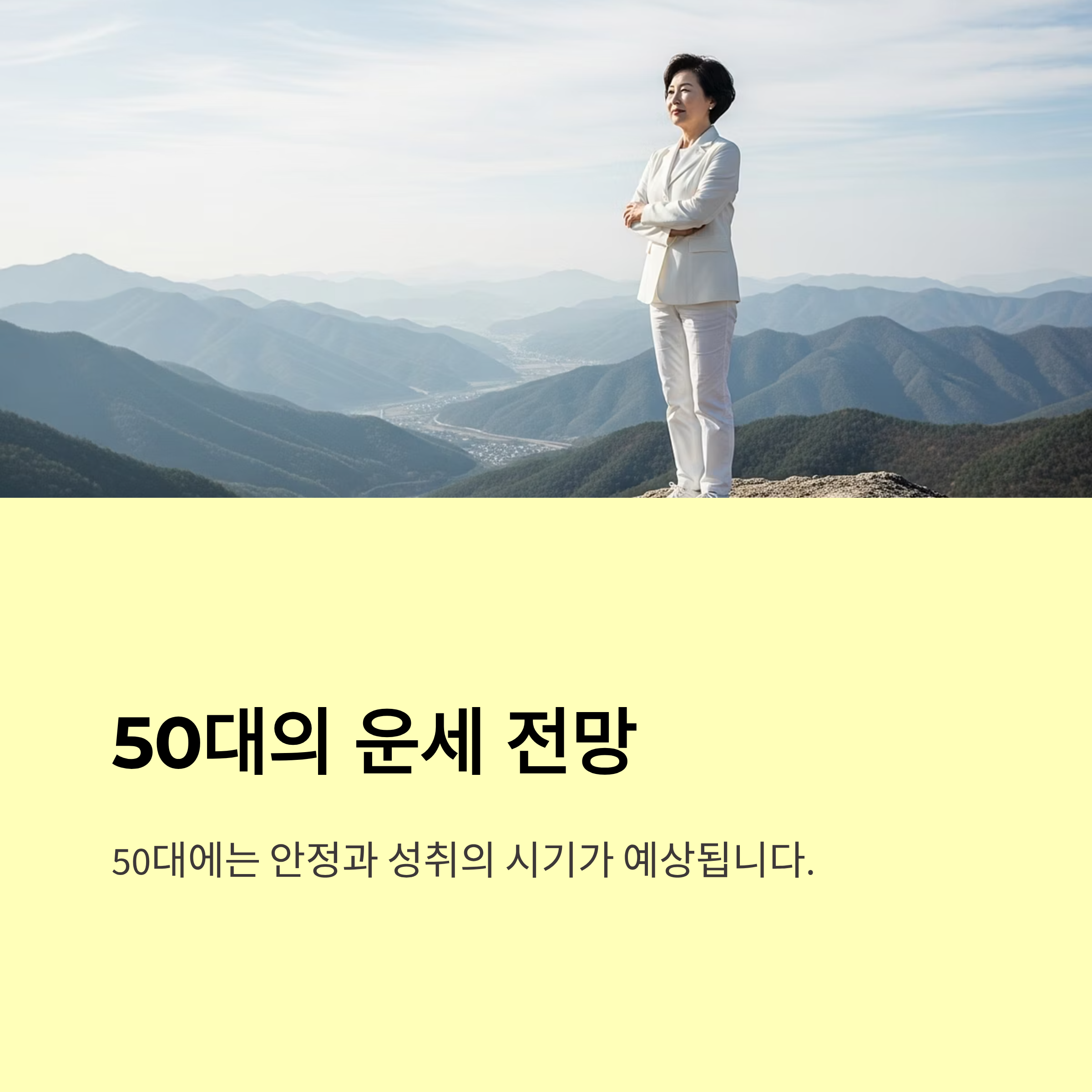 60대 이후에도 활동이 지속되는 흐름이 있으며, 명예와 관련된 자리에서의 역할이 부각될 수 있어요. 다만, 건강 관리가 병행되어야 안정적인 후반기를 보낼 수 있어요.