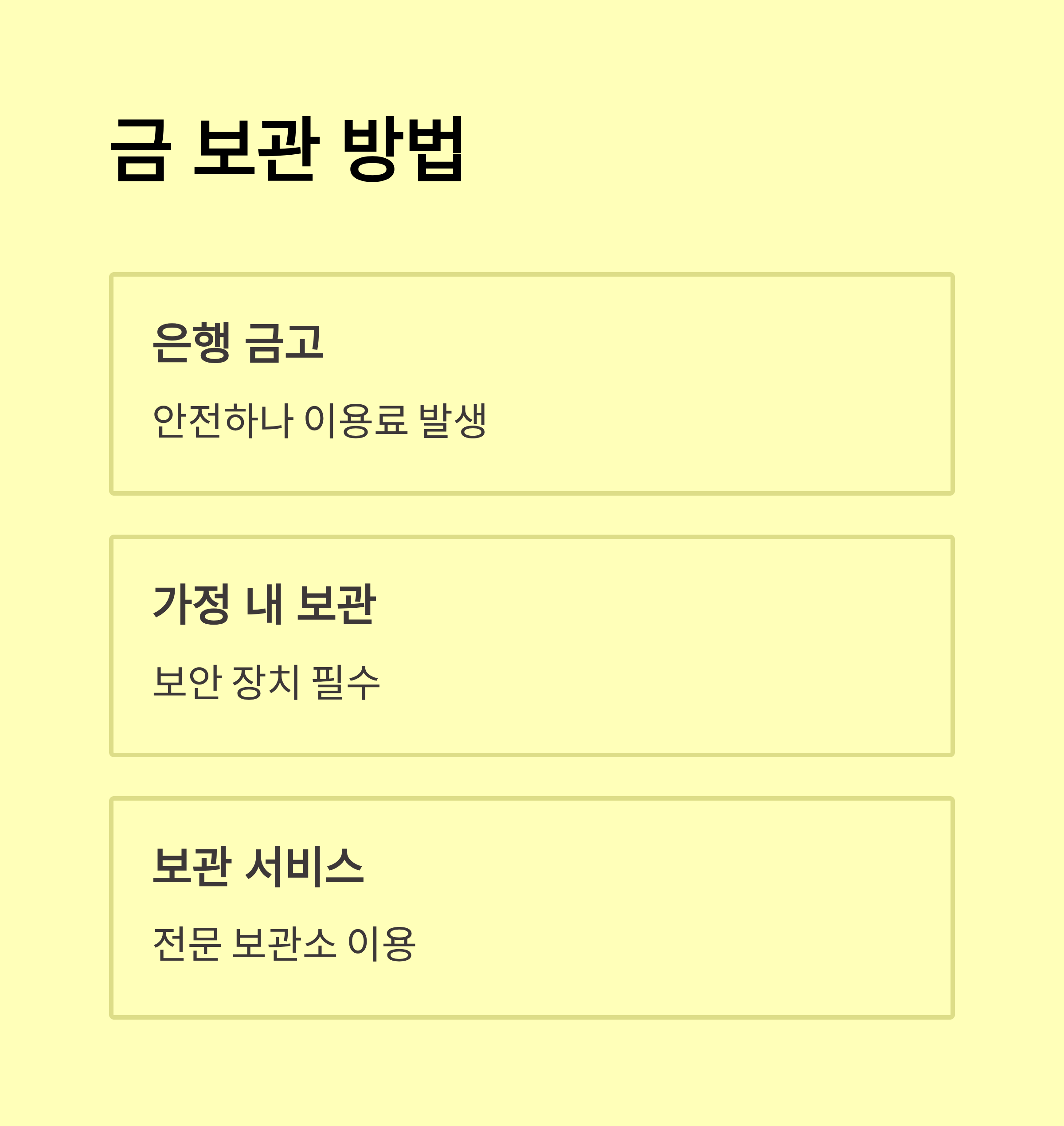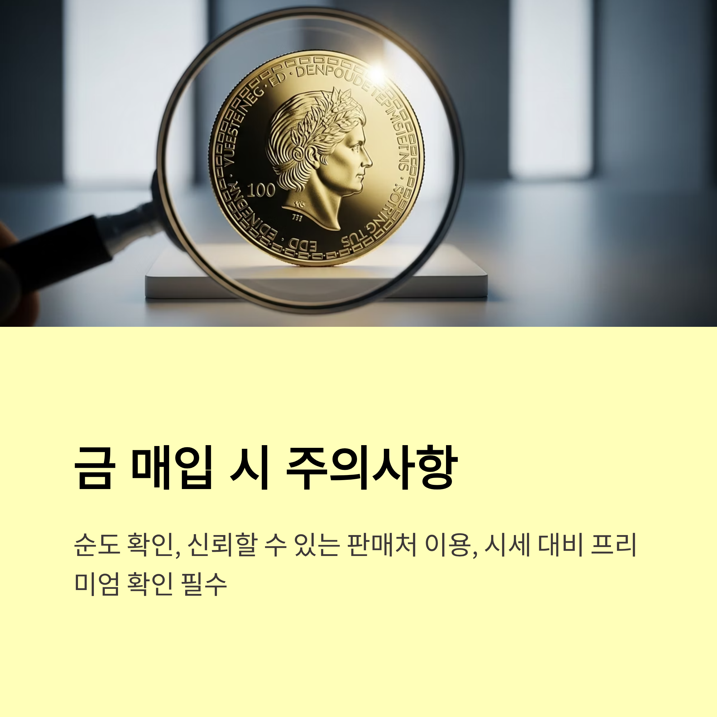 - 실물 금 보관 및 위조 방지, 감정서 발급 관련 절차를 충분히 이해해야 하며 안정적인 보관 환경을 마련해야 합니다.