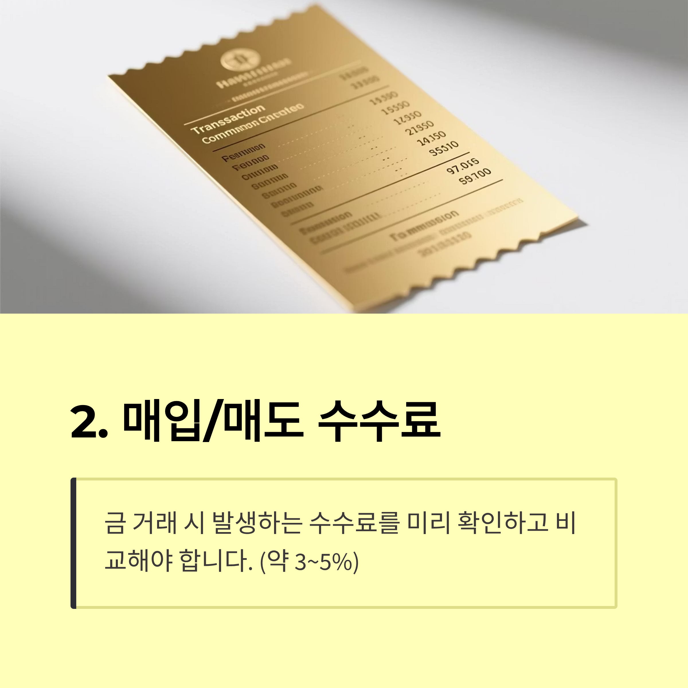마지막으로 세금 문제도 놓치면 안 돼요. 금을 1kg 이상 실물로 거래하거나 수익이 발생하면 부가세, 양도소득세 등이 붙을 수 있기 때문에, 세무적 이슈도 사전에 확인하는 게 좋아요.📌